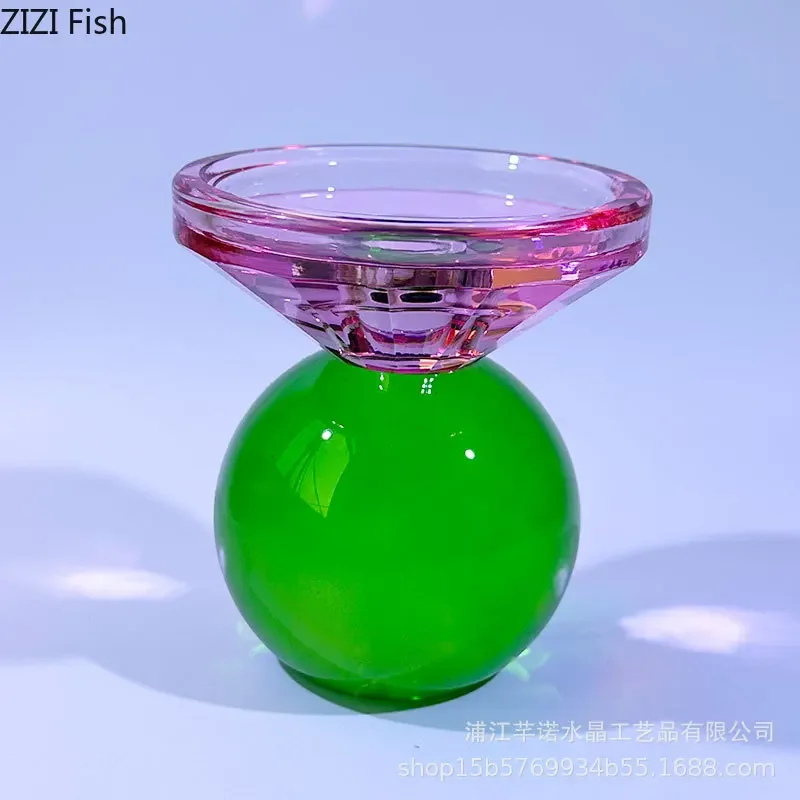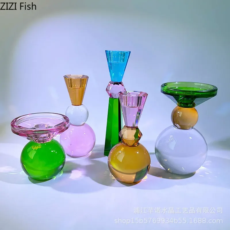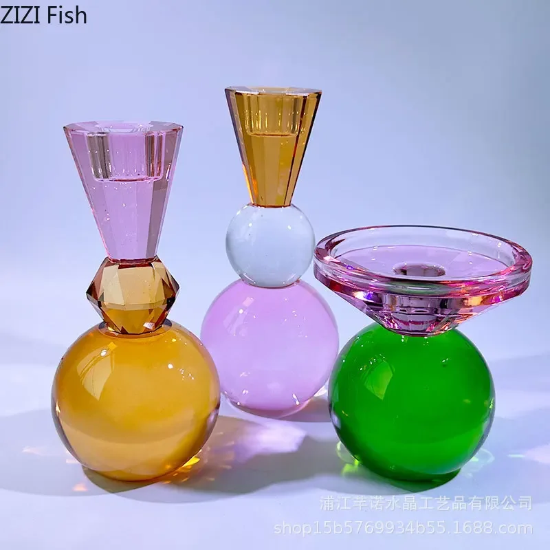 Colored Crystal Candle Holder Tall Feet Candlestick Holder Wedding Decoration Candle Stand Candlelight Dinner Props Candles Rack