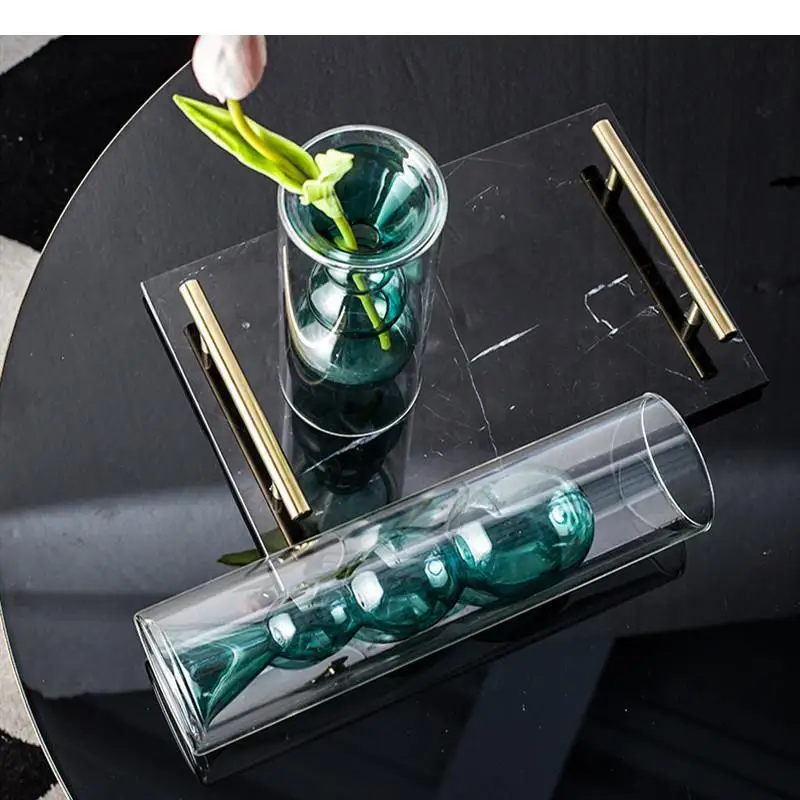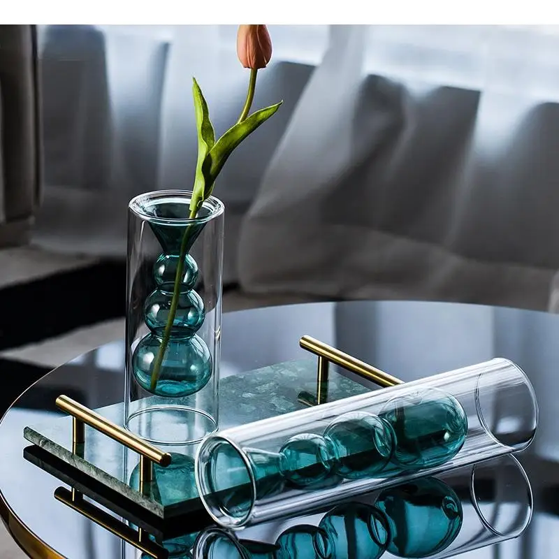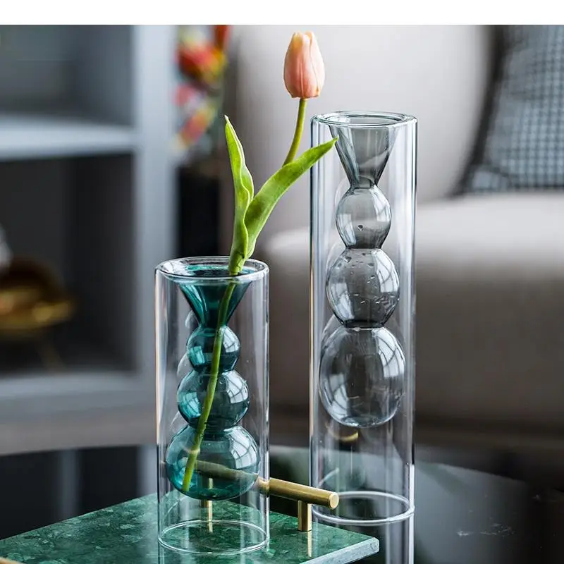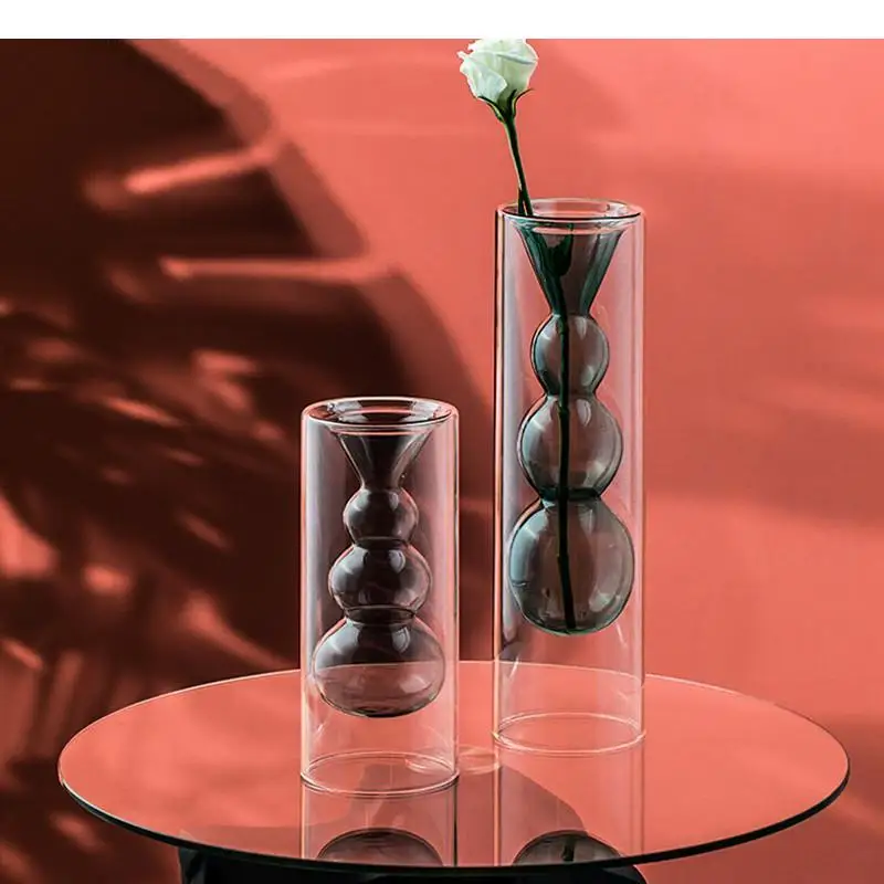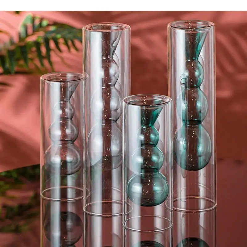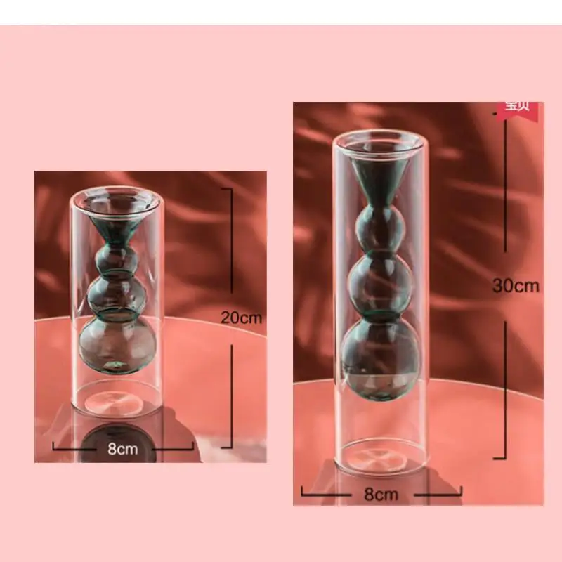 Colored Transparent Glass Vase Desktop Decoration Flower Arrangement Container Double-layered Hydroponic Vases