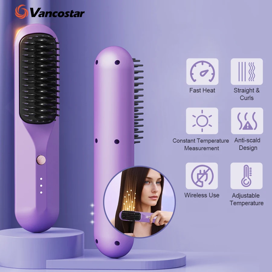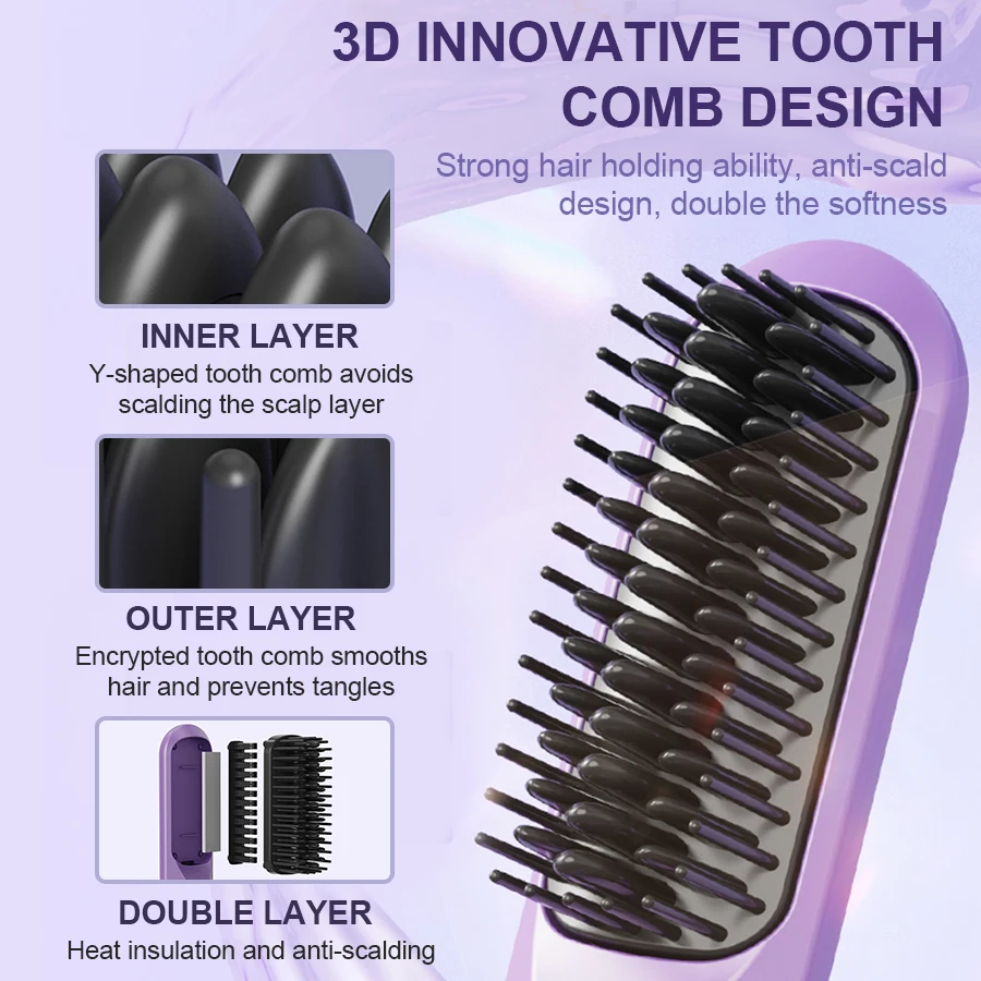 Cordless Electric Hair Brushes Straightener Brush Heat Comb for Women Travel Portable Dryer and Straightening Brush Styler