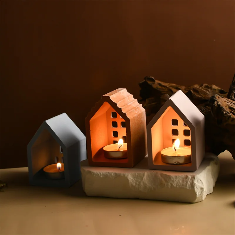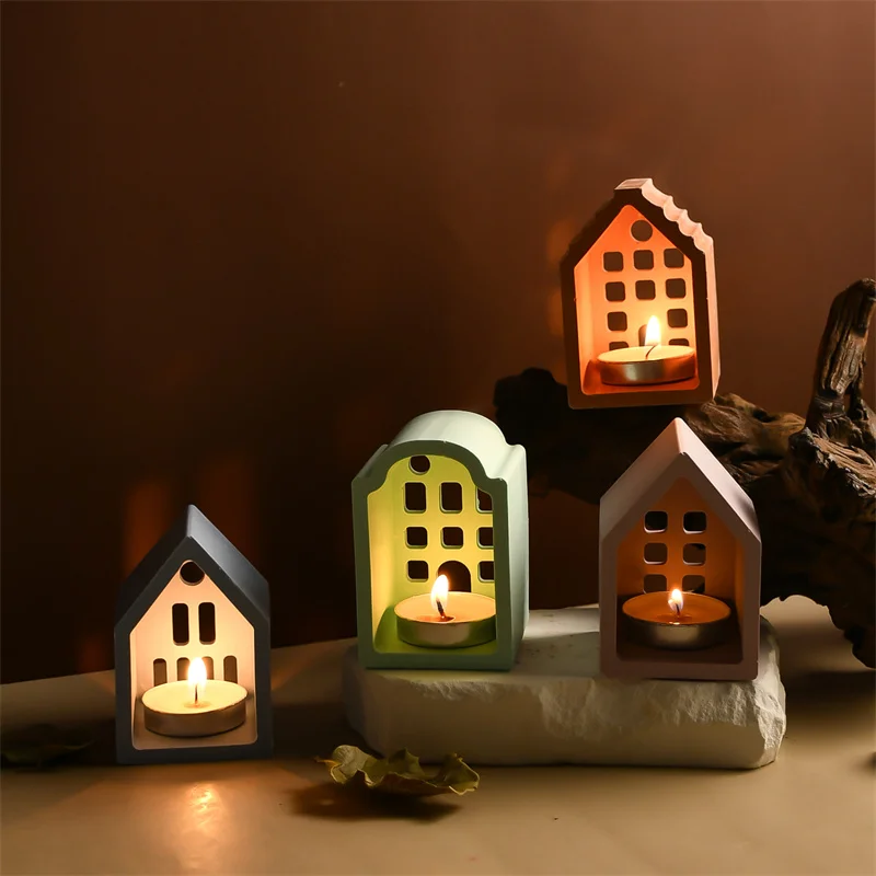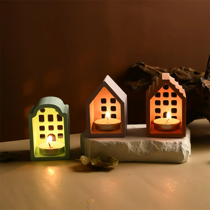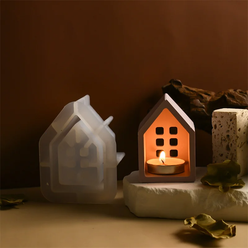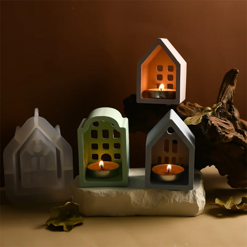 Creative House Shape Candle Holder Silicone Mold Handmade Ornament Candlestick Home Decoration Mould