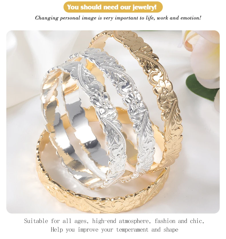 ★Item: Cring Coco Hawaiian Bangle Hand Bangles Woman Hard Gold Plated Jewelry Hibiscus Flower Samoan Silver Color Bracelet for Women