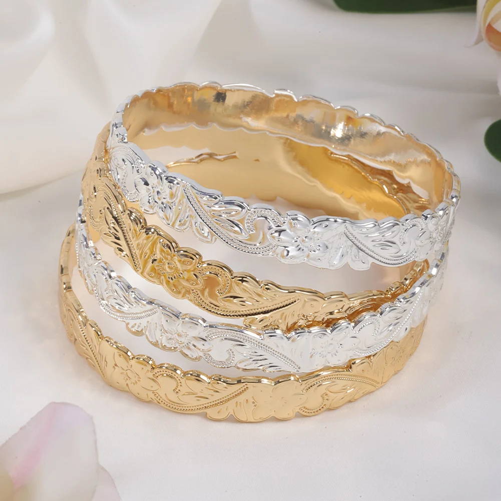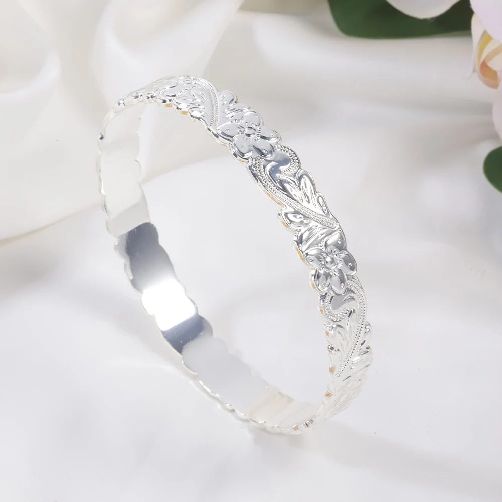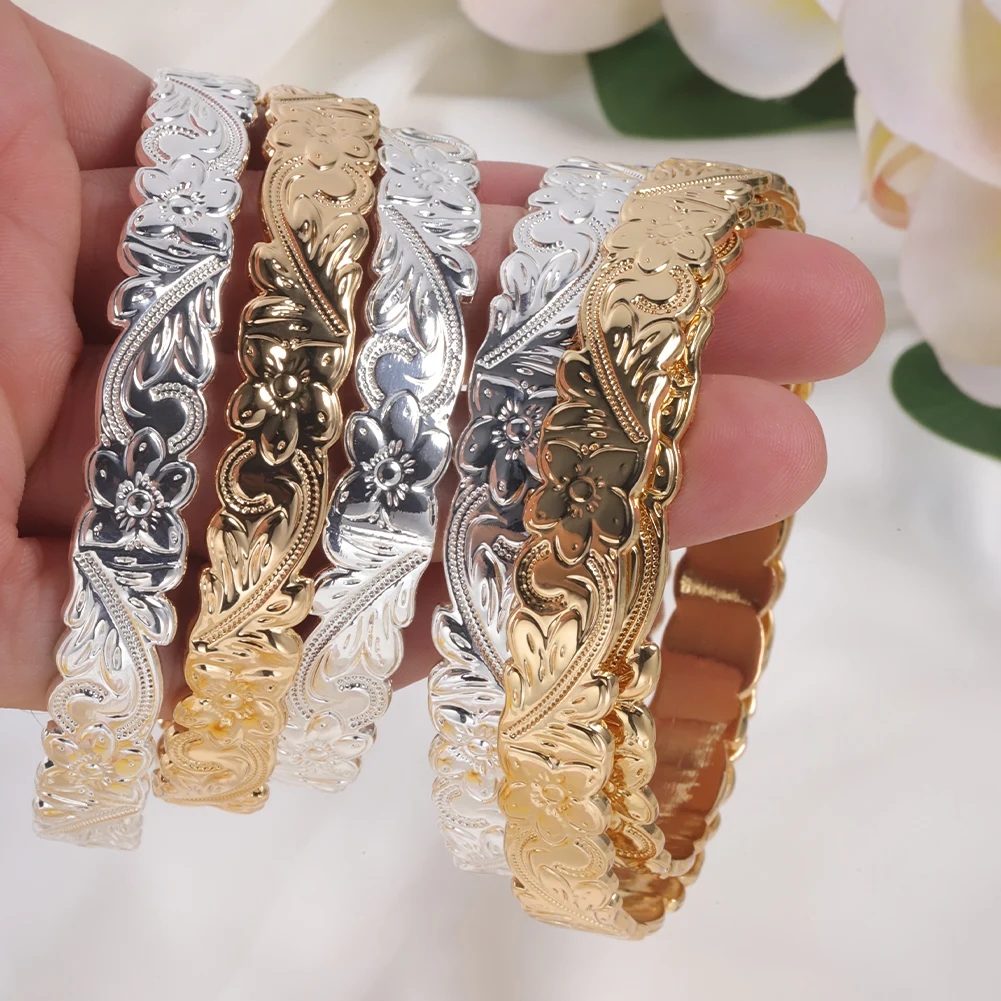 ★Item: Cring Coco Hawaiian Bangle Hand Bangles Woman Hard Gold Plated Jewelry Hibiscus Flower Samoan Silver Color Bracelet for Women