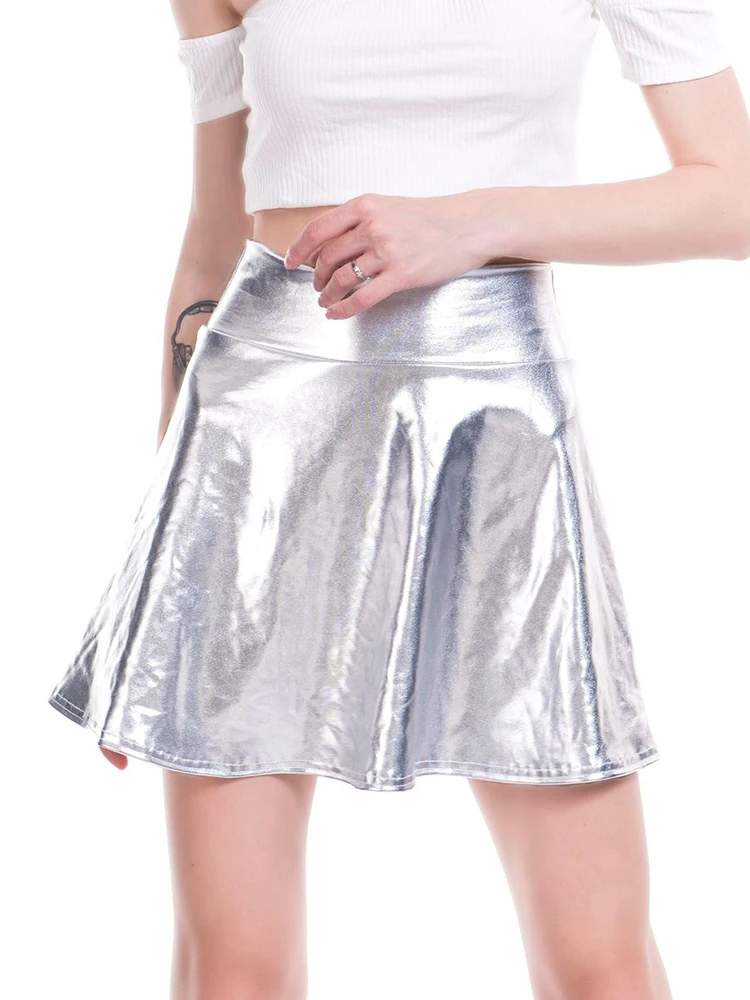 CUHAKCI Skater Pleated Skirt High Waist Women Party Casual Mini Gold Female Silver Black Clubwear Dance