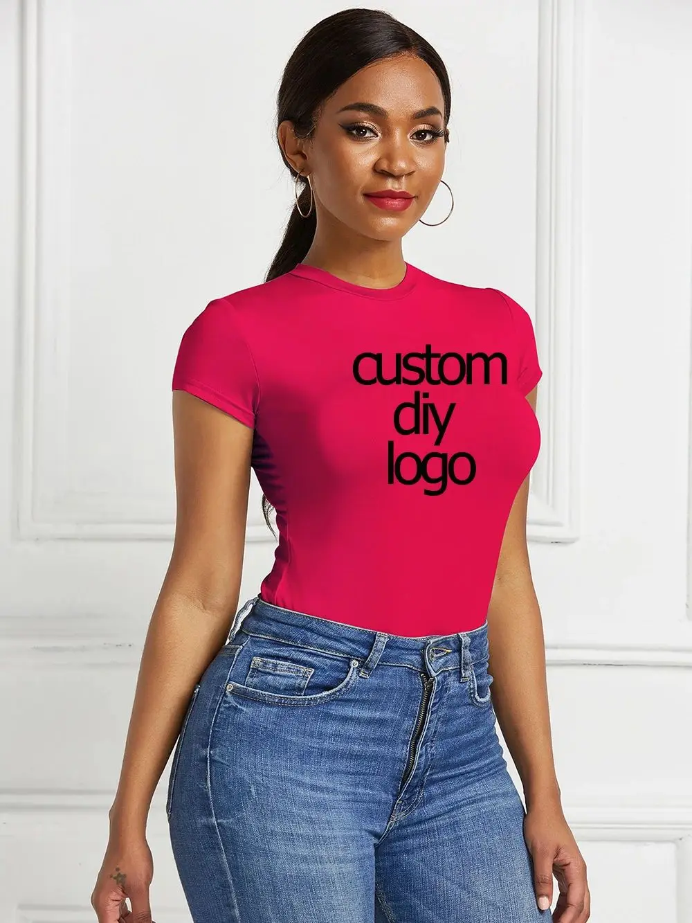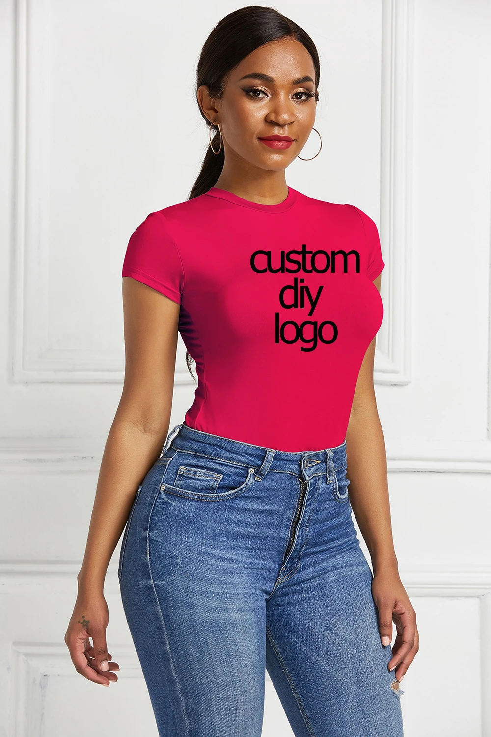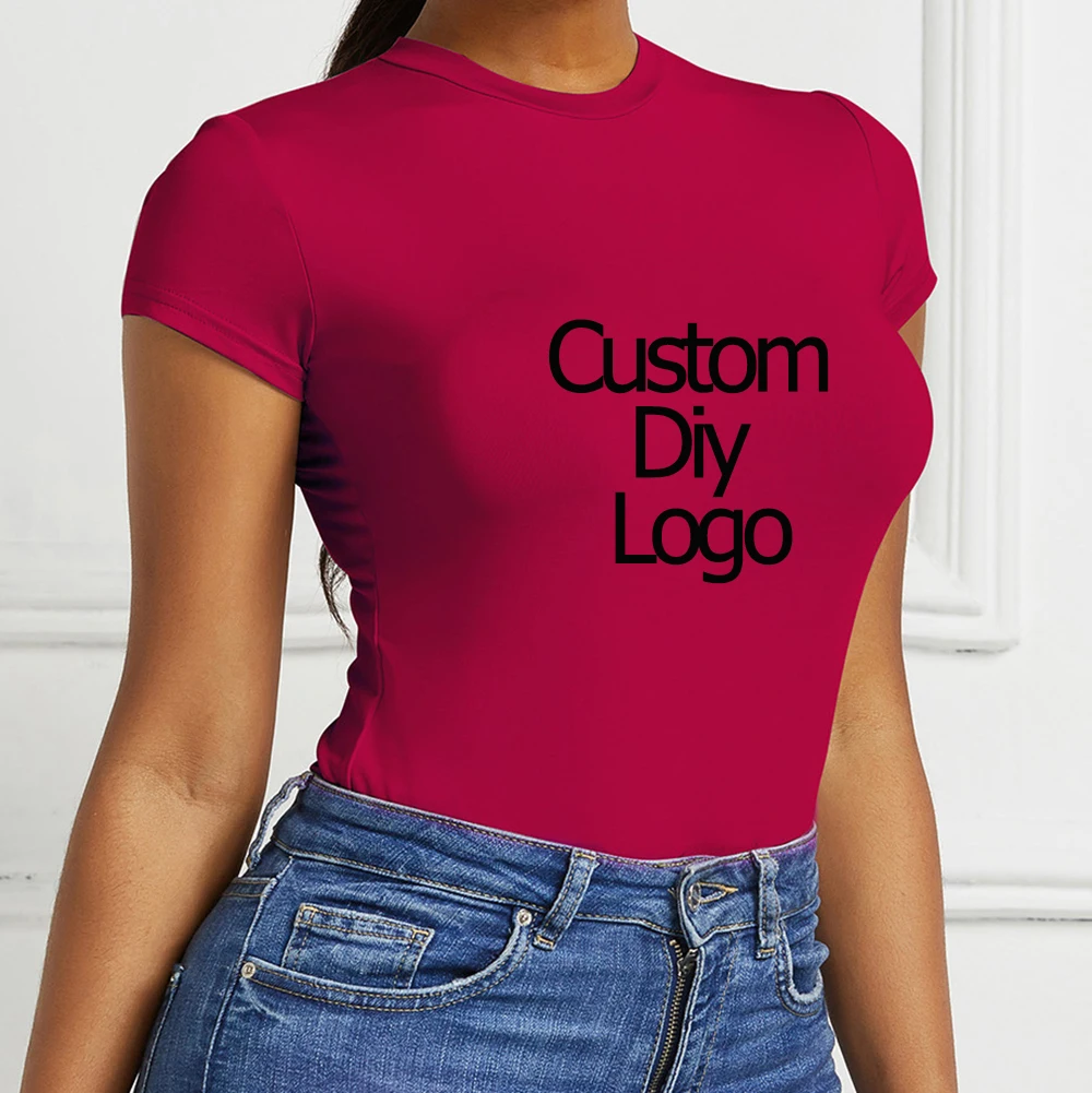 Custom Diy Print Pattern Design Sexy Bodycon Bodysuit Short Seelve Pure Color Open Basic Body Top Skinny Rompers Female