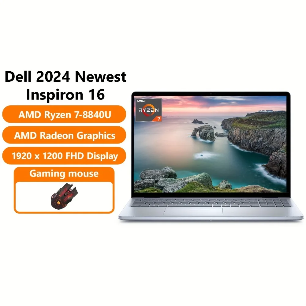 Dell Inspiron 16″ Business Laptop,AMD Ryzen 7-8840U,64GB RAM,4TB SSD,AMD Radeon Graphics,Ice Blue,with Gaming Mouse