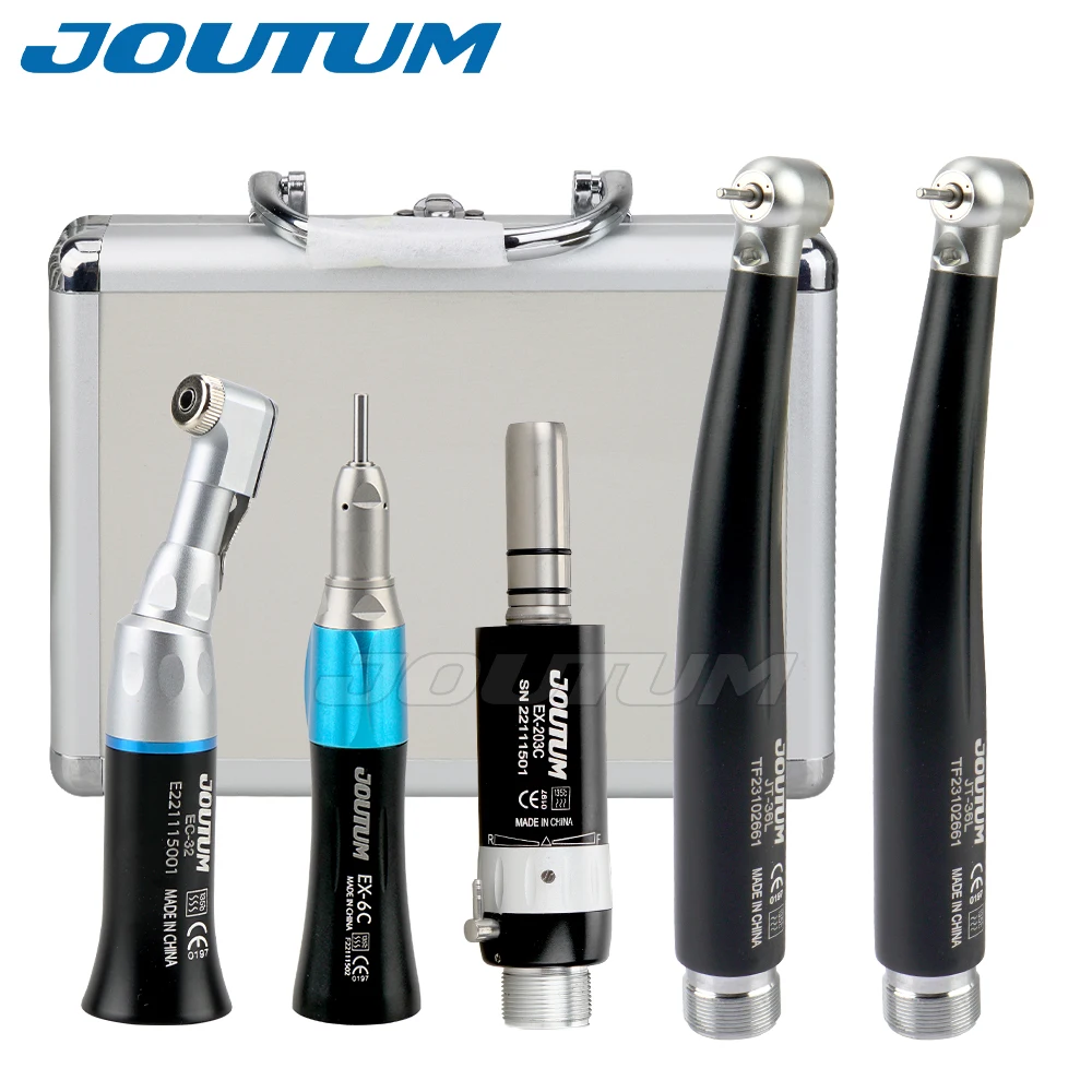 Dental Color Low Speed and LED High Handpiece Kit Push Button Contra Angle Single Way Water Spray Air Turbine 2/4 Hole