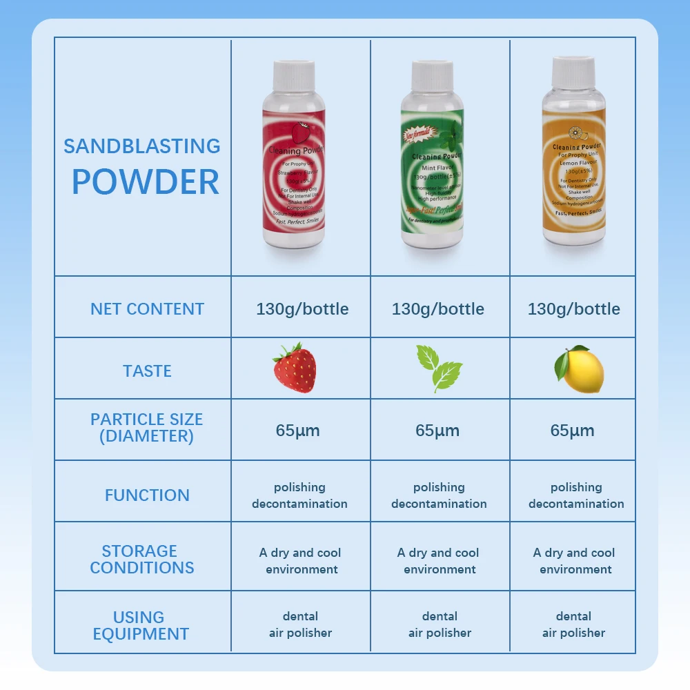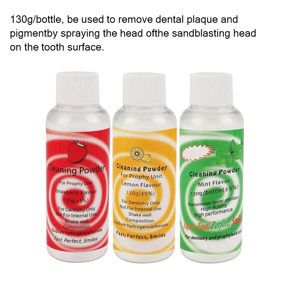 Dental Polishing Powder Prophy Air jet Flow Teeth Cleaning Plaque stain Removal Sodium bicarbonate 130g Mint Lemon Strawberry