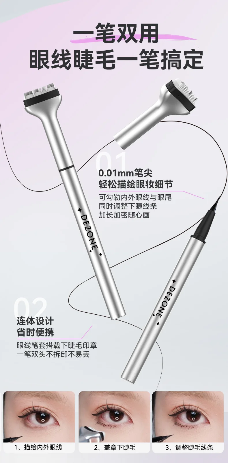 Dezone Lower Eyelashes Stamp Makeup Professionnelle Undereyelash Seal Eyeliner Pen Waterproof And Sweat Proof Eye Liner 2 In 1