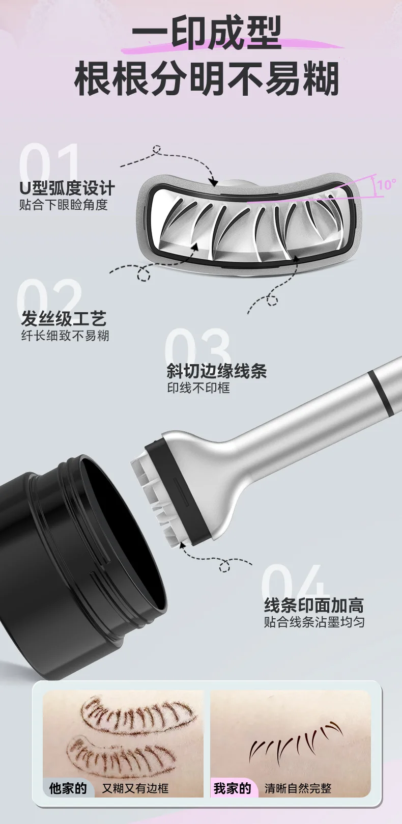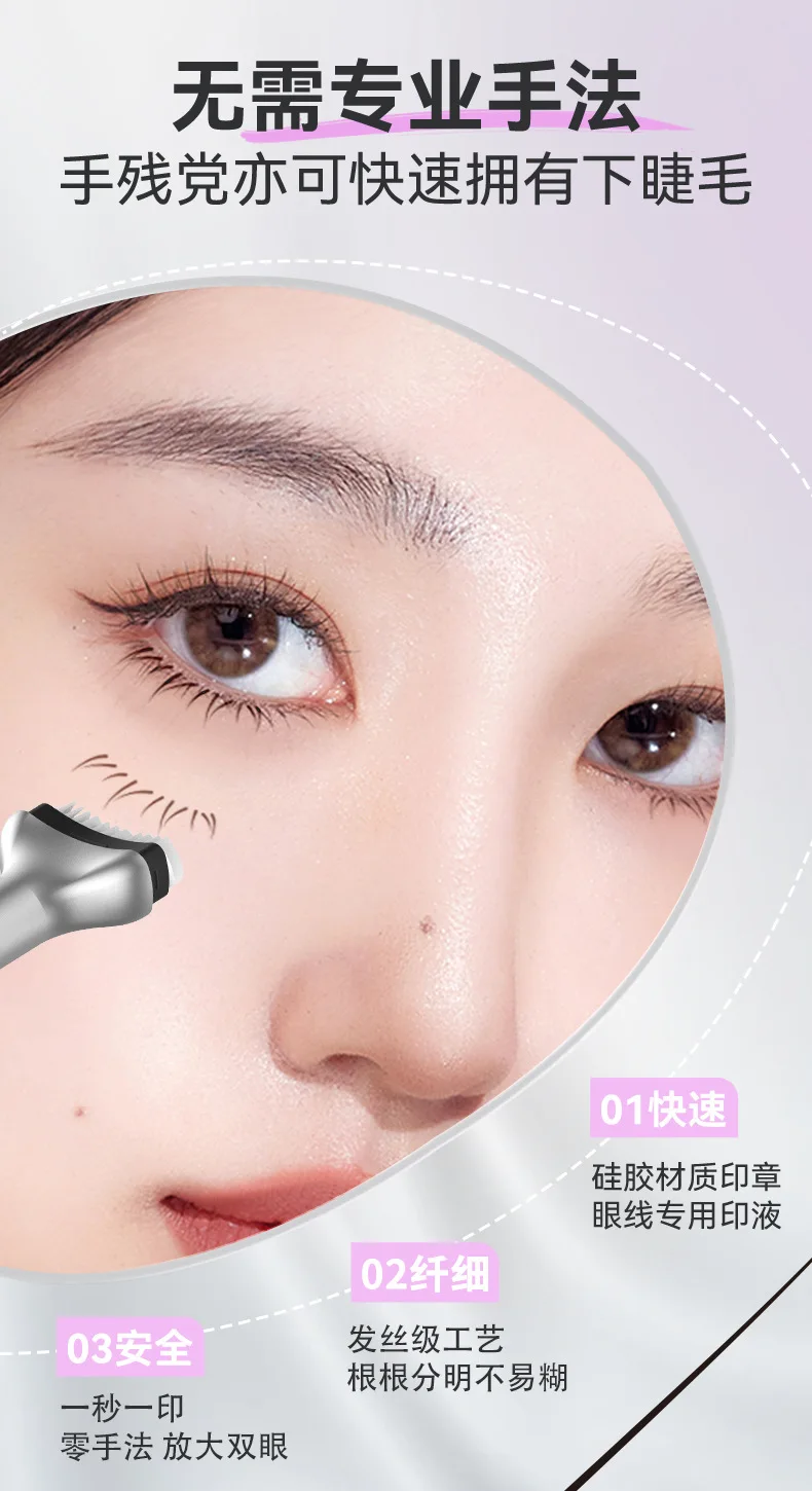 [Must-Have] If you are not good at applying fake lower lashes, or your hand shakes when applying fake lower lashes and the glue sticks everywhere, you can try this fake lower lash stamping tool, just use the fake lower lash stamping tool, after stamping underneath your beautiful eyes, then use eyeliner to deepen your lower lashes, which can make your fake lower lashes become more realistic and thicker!