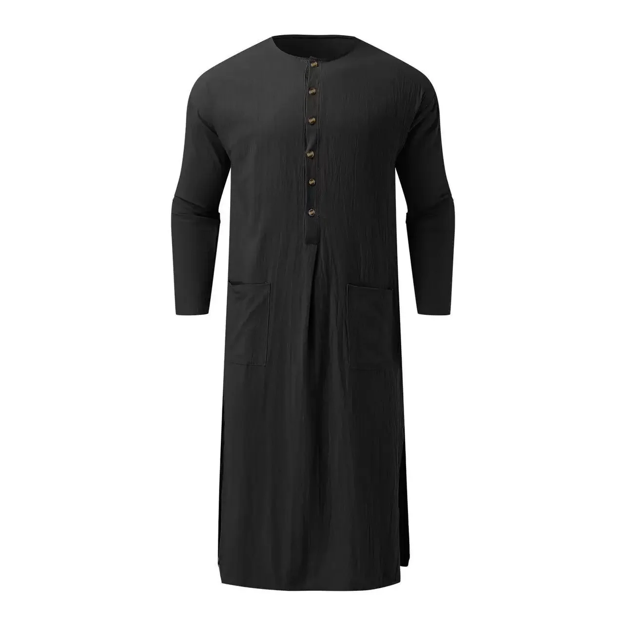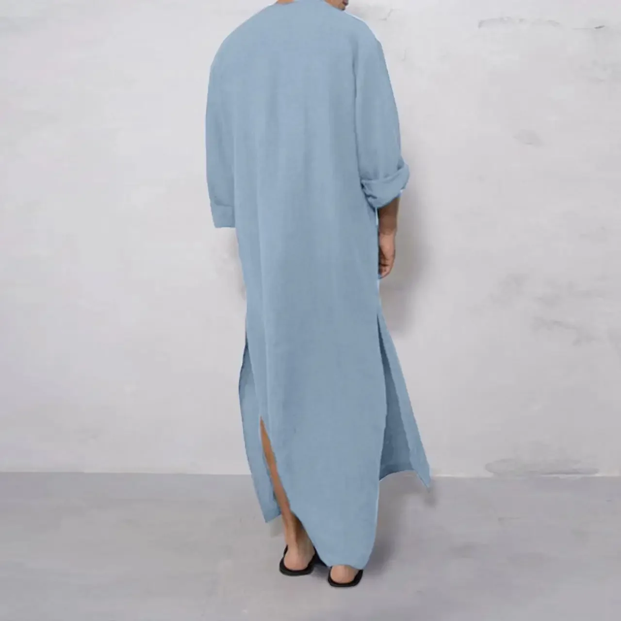 Dubai Saudi Arab Men New Style Muslim Loose Stand Collar Long Sleeve Obe Abaya Casual Male Islamic Arabic Muslim Kaftan 2024