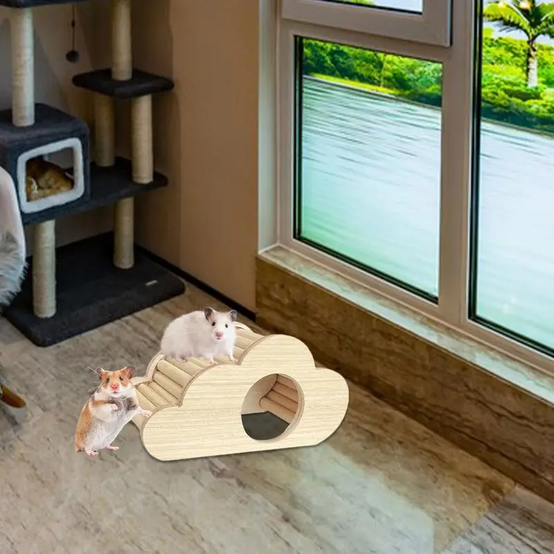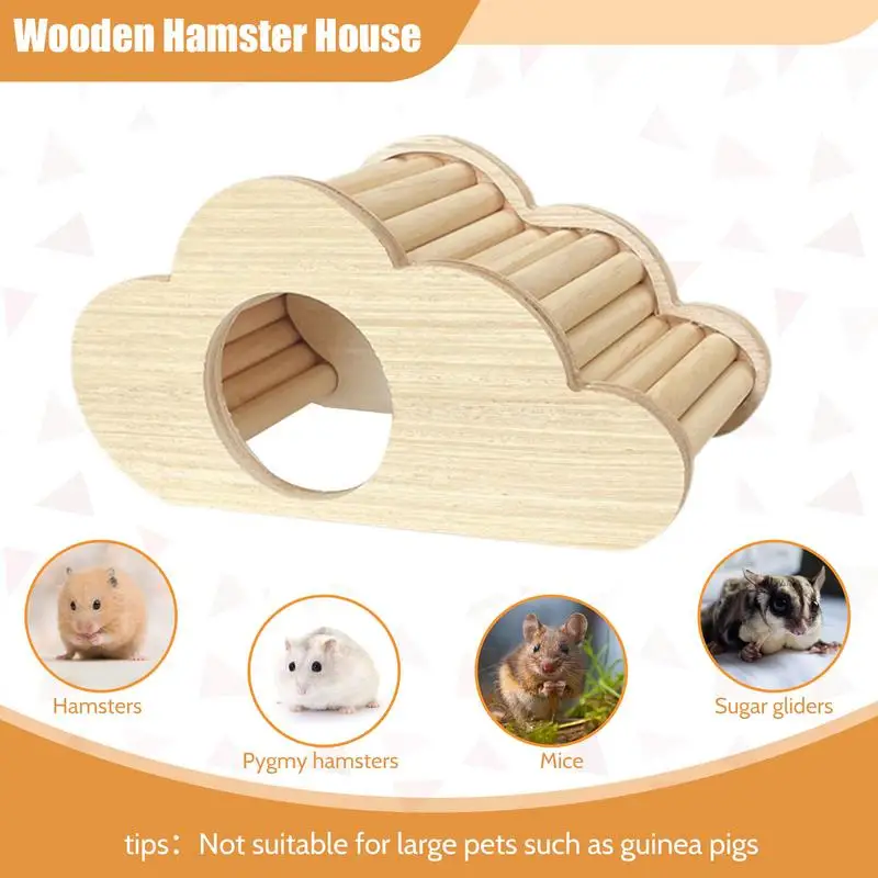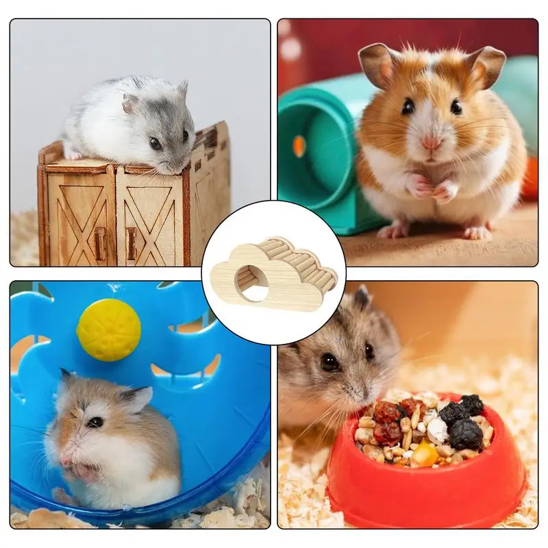 4.Habitat Beautifier: Enhance your pet’s space with our cloud-shaped wooden house, a stunning and unique addition that matches any hamster habitat decoration.