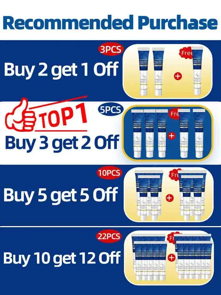 For severe symptoms, we strongly recommend using (buy 5 get 5 free) 10 bottles for permanent removal of spots (say goodbye to new spots)