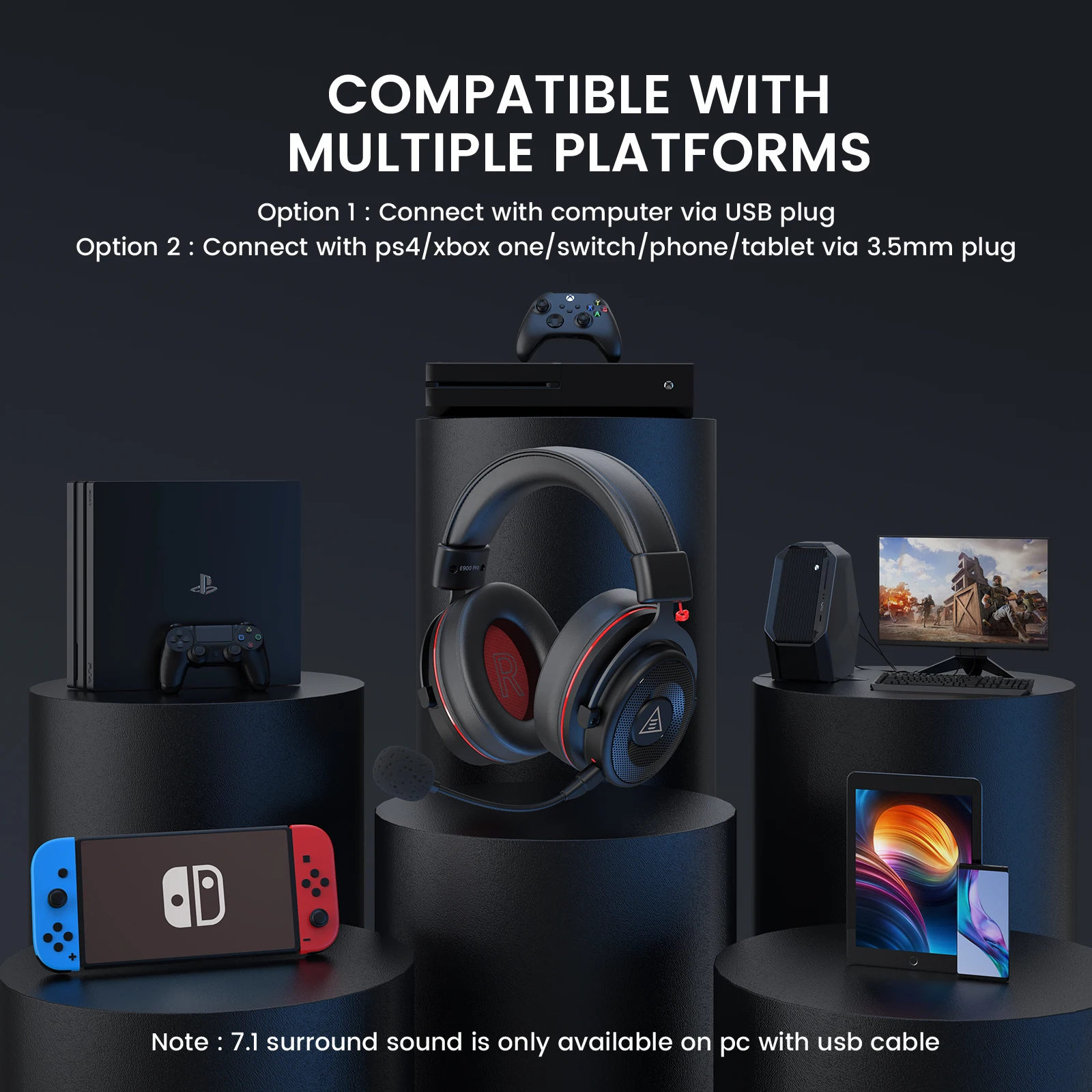 EKSA PC Gaming Headphones Over-Ear,E900 Pro 7.1 Surround Wired Headset Gamer, with Detachable Noise Cancelling Mic, for PS5/Xbox
