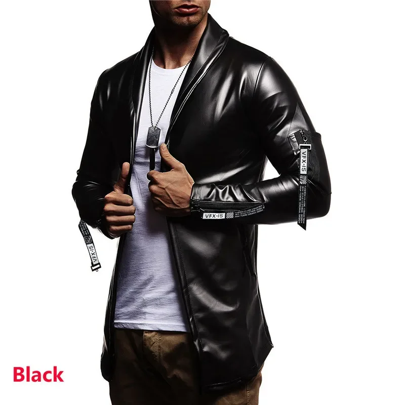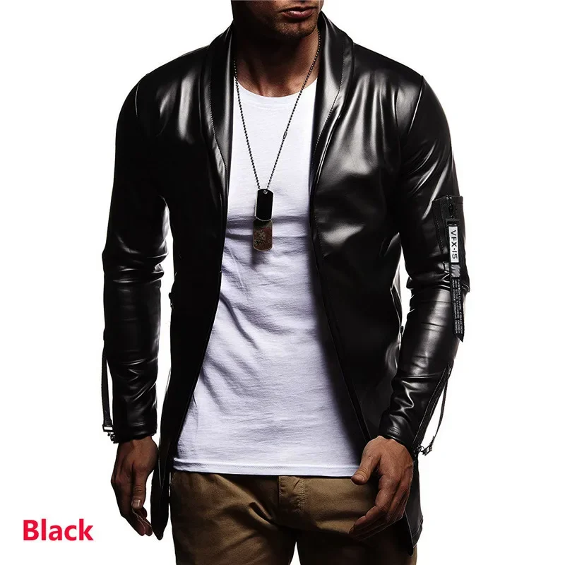 Elastic Pu Leather Zippered Motorcycle Jacket 2020 New Western Style Men’s Clothes Suitable For All Seasons