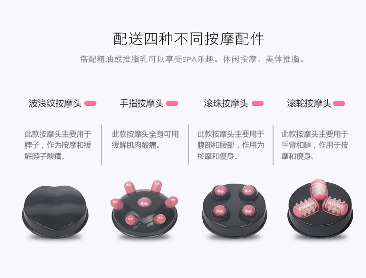The machine is designed to suit four different massage heads included for full body slimming, so that it can meet your various need.