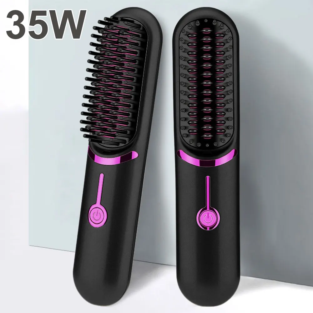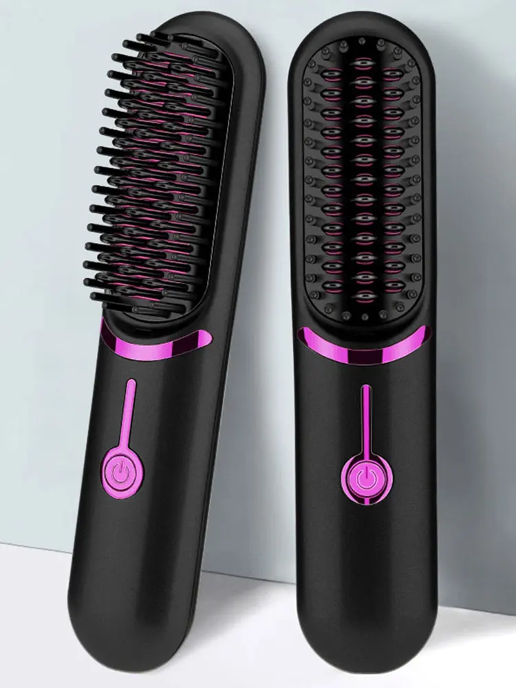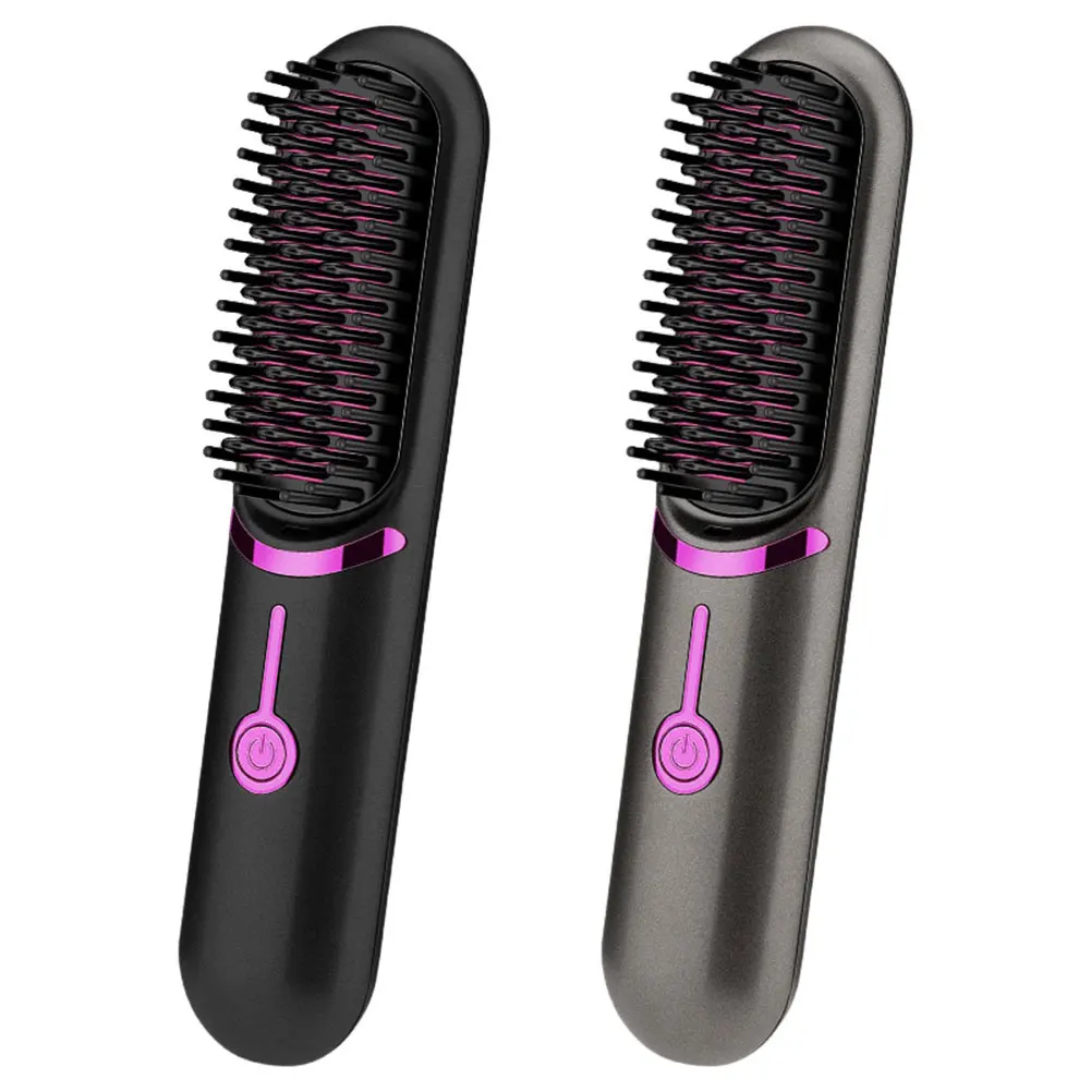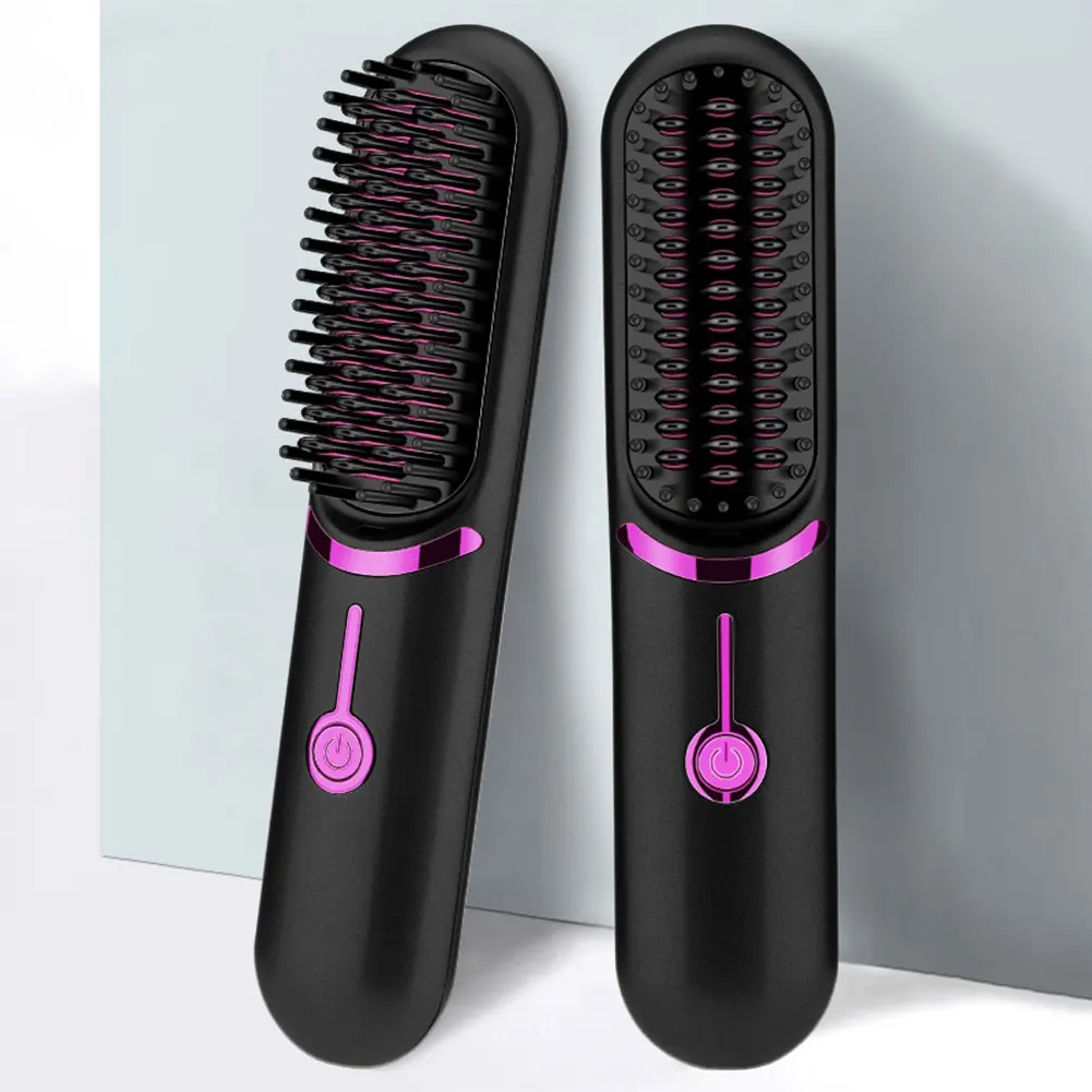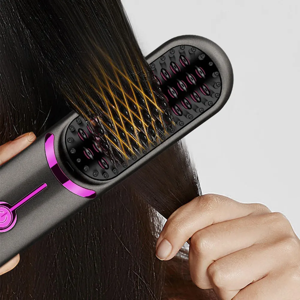 Electric Hot Comb USB Charging Cordless Hair Straightener Brush Anti-Scalding Portable Mini Hair Straightener for Outdoor Travel