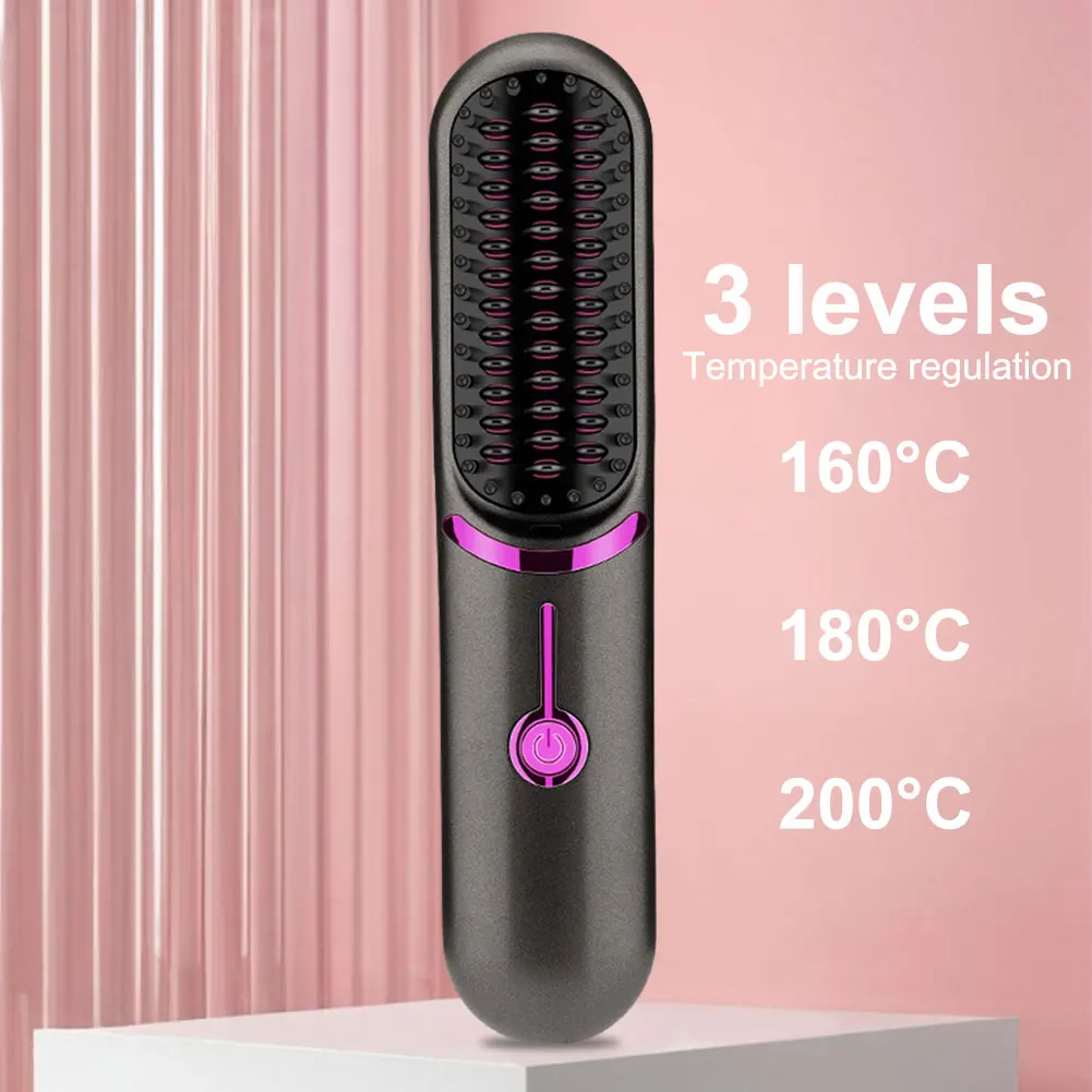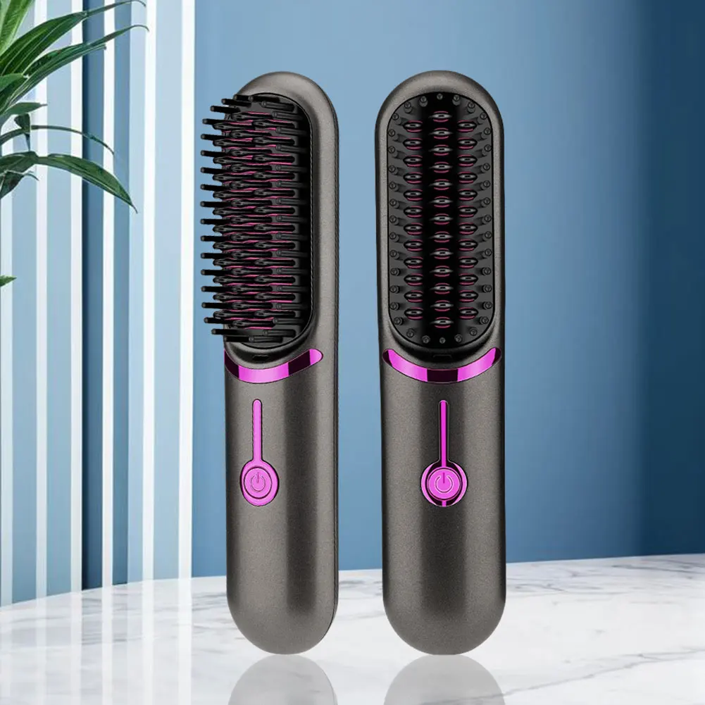 Electric Hot Comb USB Charging Cordless Hair Straightener Brush Anti-Scalding Portable Mini Hair Straightener for Outdoor Travel