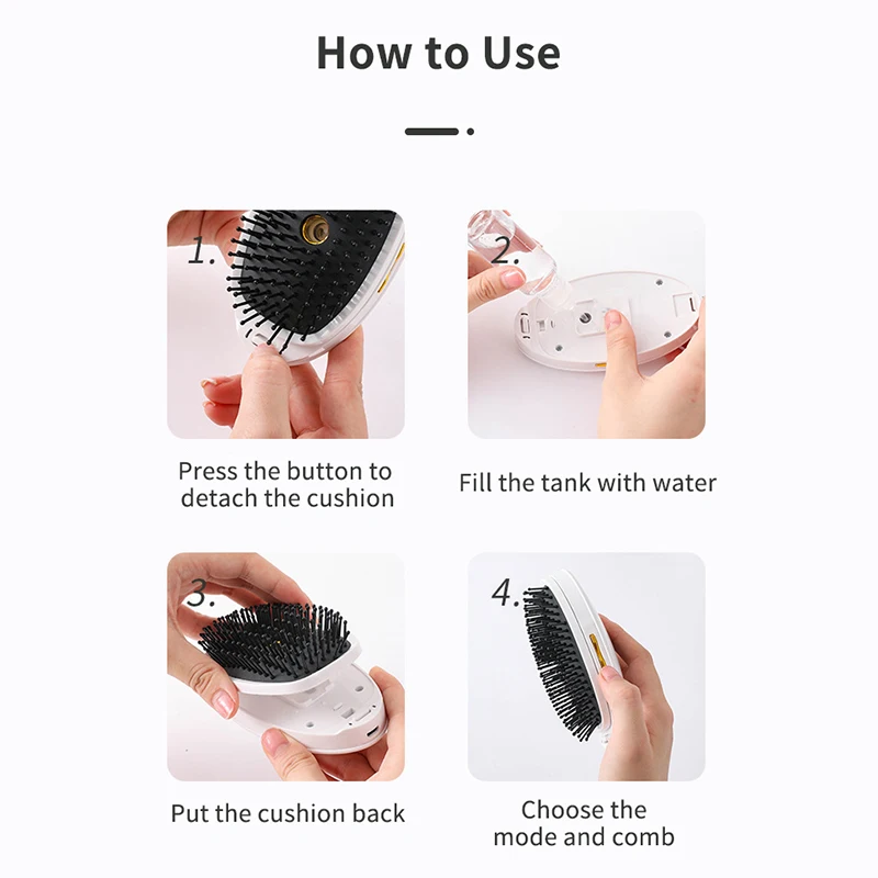 Electric Massage Brush Hair Comb Smoothing Straightening Spray Steam Scalp Head Household Hair Styler Tool for Frizzy Dry Hair