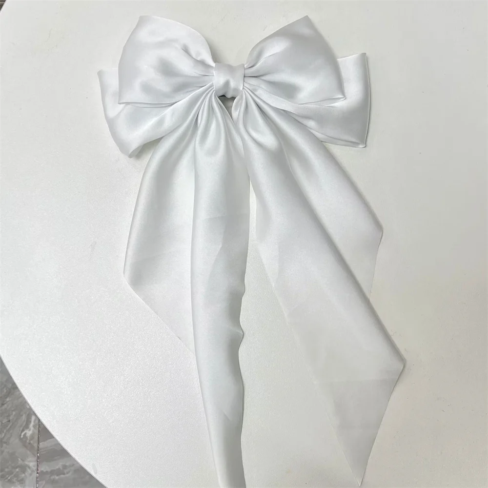 Elegant Bow Ribbon Hair Clip Fashion Simple Solid Satin Spring Clip Hair Pin Retro Headband with Clips Girls Hair Accessories