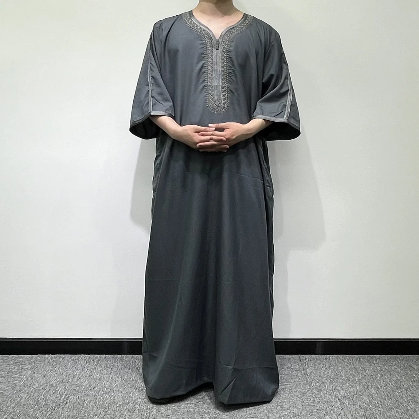 Embroidered Muslim Jubba Thobe Moroccan Arab Robe Spring Summer Middle East Islamic Men Traditional Casual Robes Muslim Dress