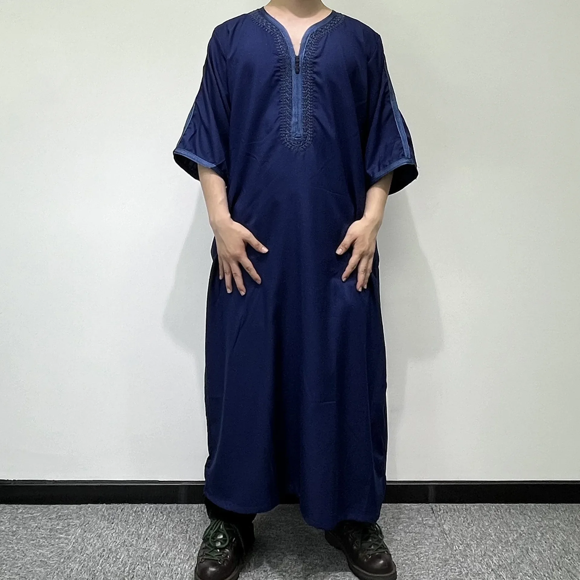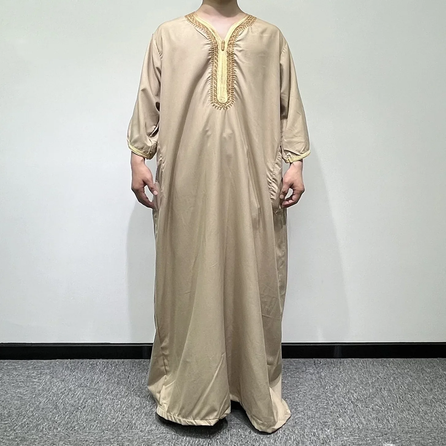 Embroidered Muslim Jubba Thobe Moroccan Arab Robe Spring Summer Middle East Islamic Men Traditional Casual Robes Muslim Dress
