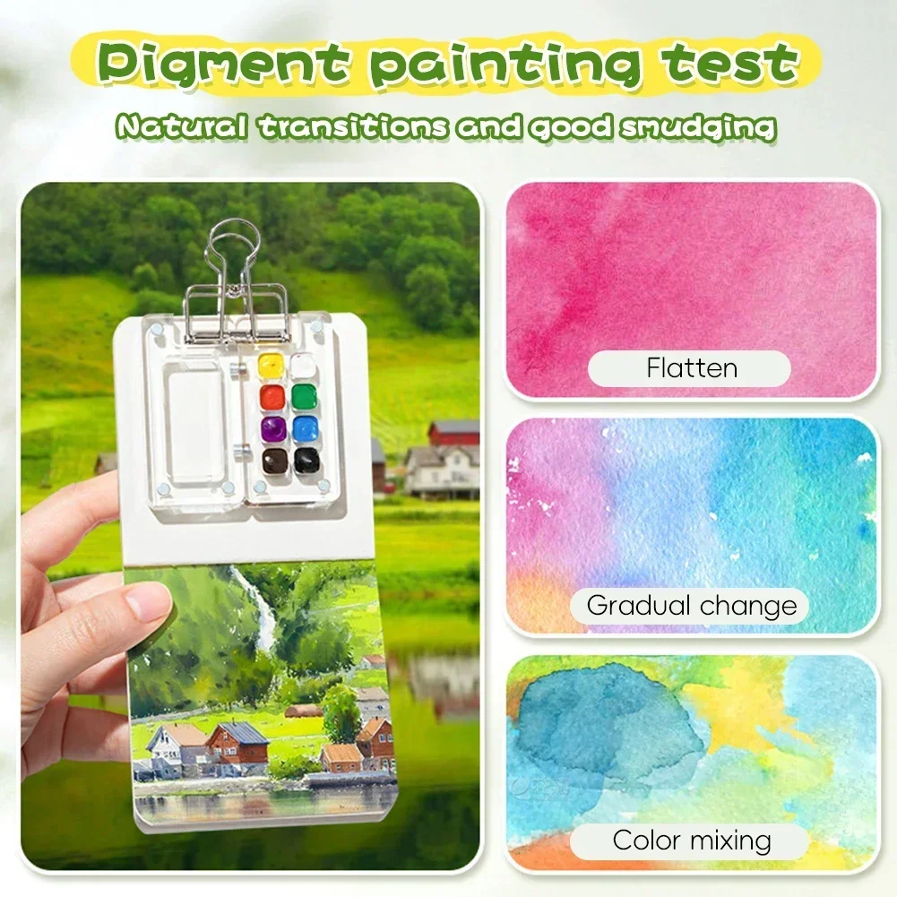 - Get more freedom to create a masterpiece with the watercolor paint palette case. The versatile clip enables you to fix it firmly on a sketchbook, easel, or clothing so you can quickly obtain colors and involve in an immersive painting experience.