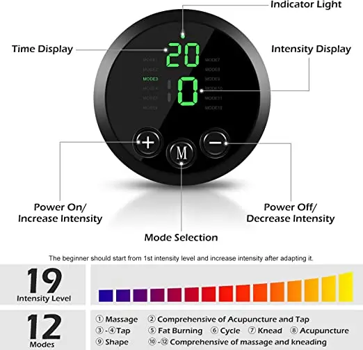 [Powerful Function]: Abs stimulator has 12 workout modes and 19 levels of intensity, from warm-up to high-intensity exercise and finally to relaxation, perfect for your various needs. The tactical x abs stimulator can not only shape the shape of buttocks, waist, and thighs but also reduce muscle pain and achieve a massage effect. EMS muscle stimulator helps you get a perfect body shape and strong abs.