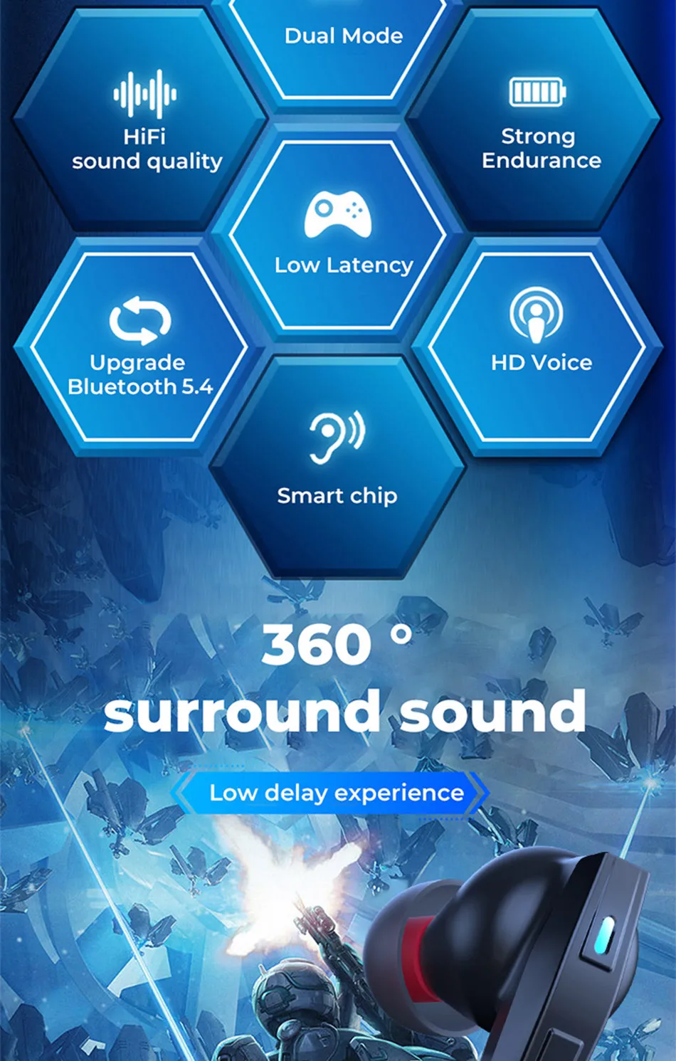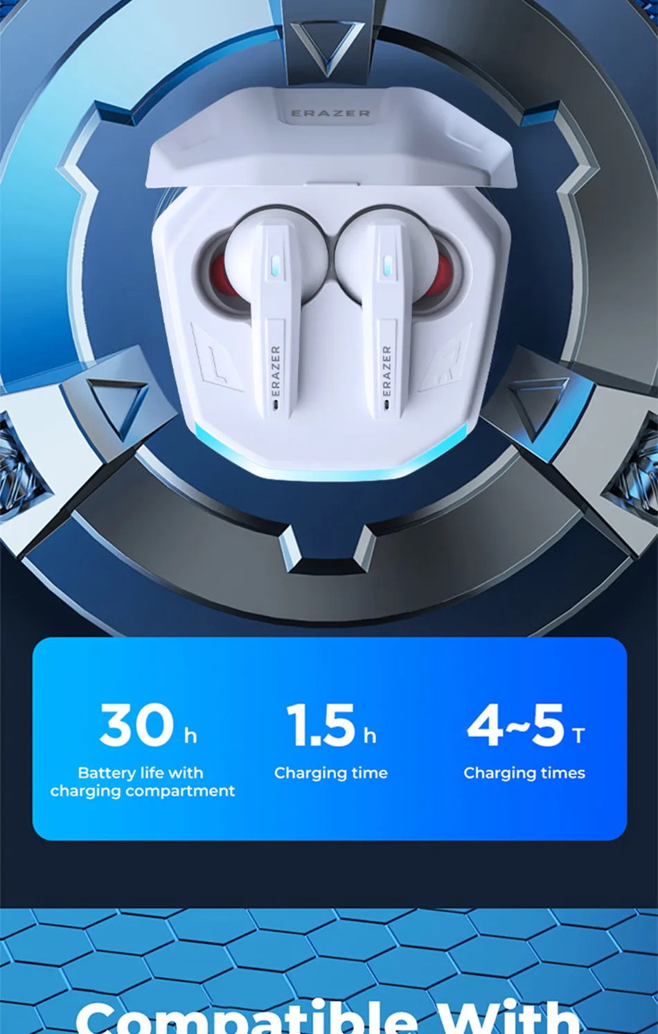 ERAZER XT86 Bluetooth Earphones Wireless Headphones Gamer Headset Waterproof TWS Noise Reduction With Mic ERAZER Earbuds
