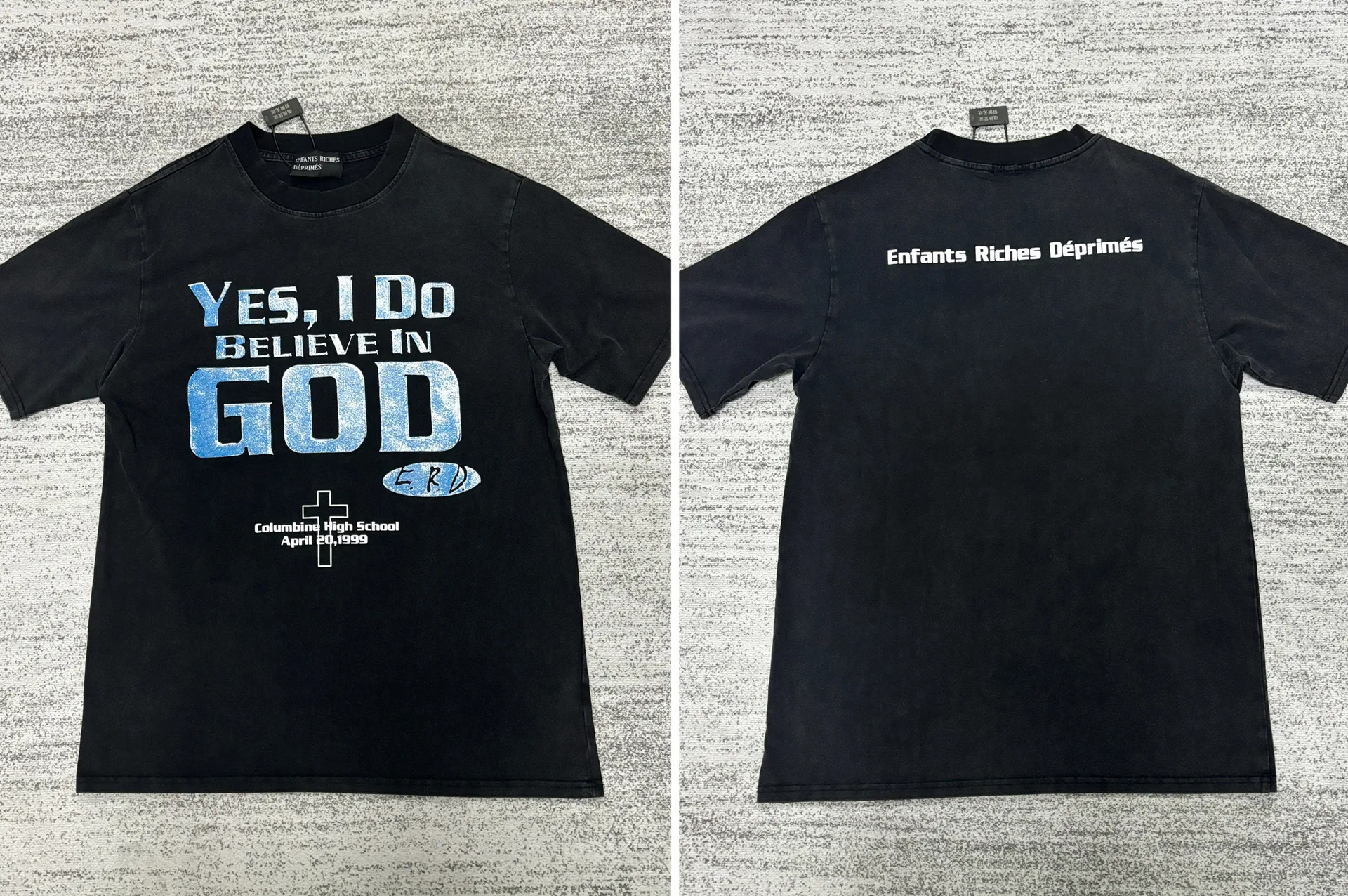 ERD CRAZY Spring and Summer New Melancholy Rich Second Generation Slogan Destroy Retro Short Sleeve Men’s T-Shirt Women’s