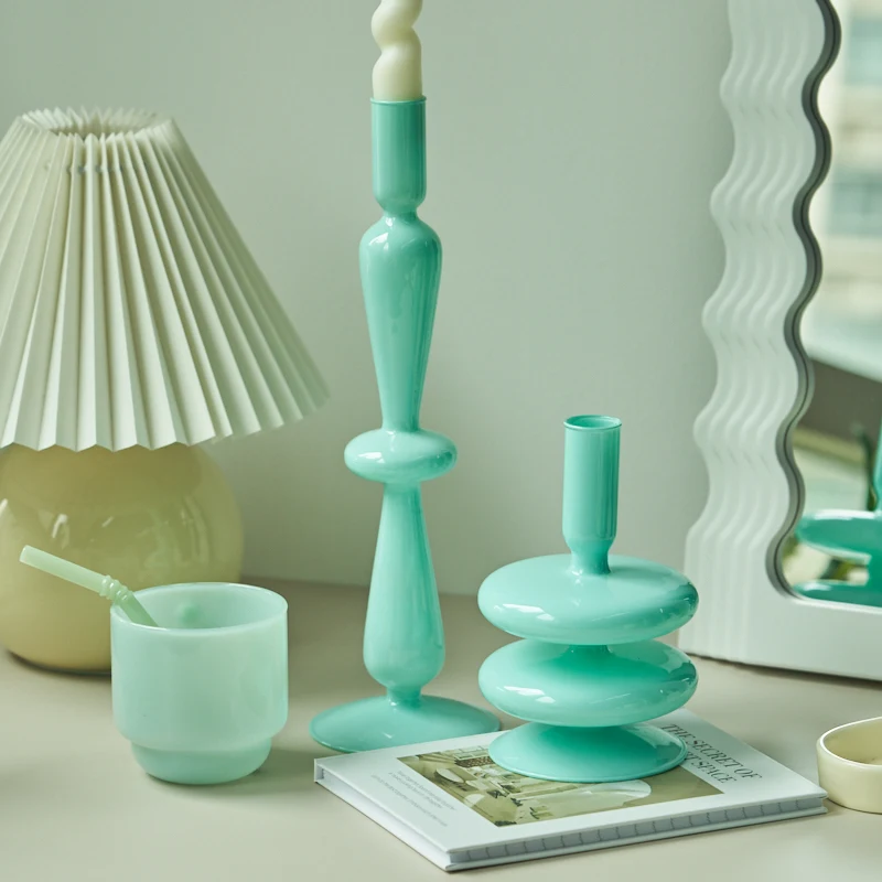 European Jade Color Candle Holders Simple Wedding Decoration Living Room Decor Home Vase Table Candlestick Holder Candle Stand