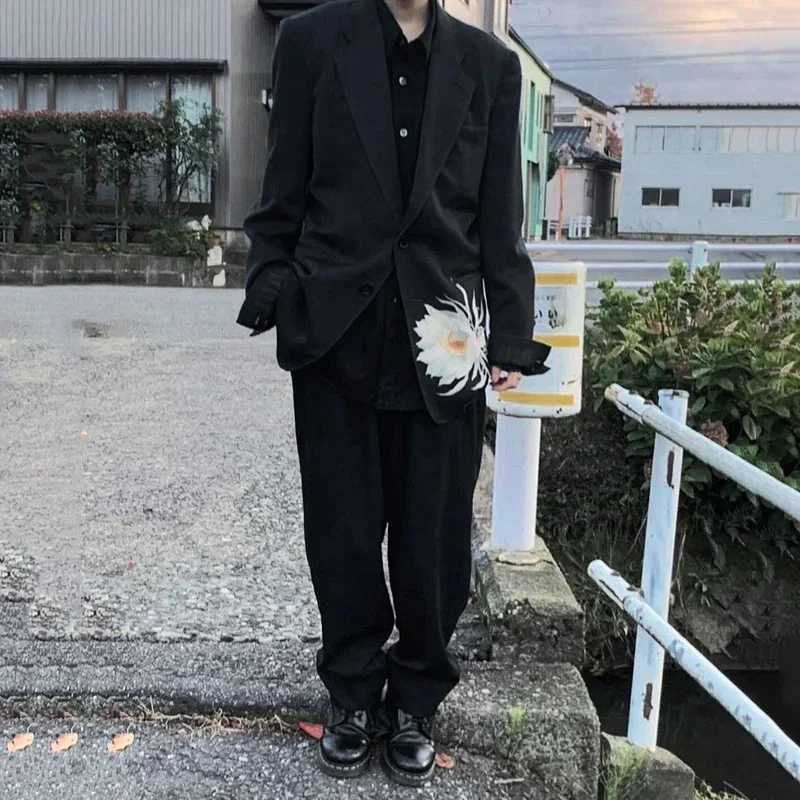FANTASTION original UNSIEX oversize blazers print flower men’s summer blazer black blazer man luxury men’s jacket print blazer