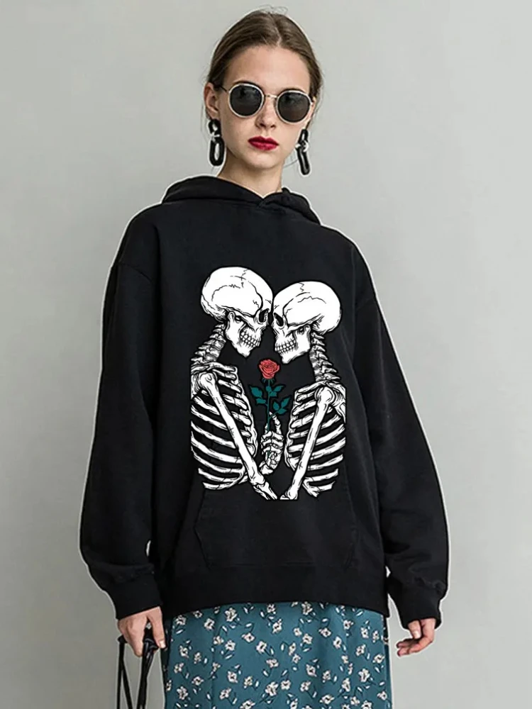 Fashion Hoodies Women Cartoon Funny Skull Women 90s Pullovers Casual Couple Sweatshirts Winter Harajuku Street Clothing