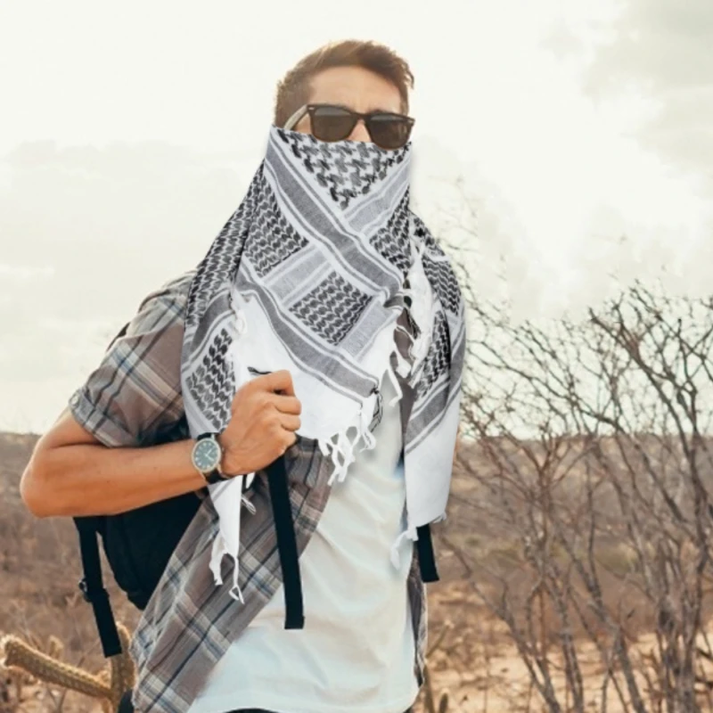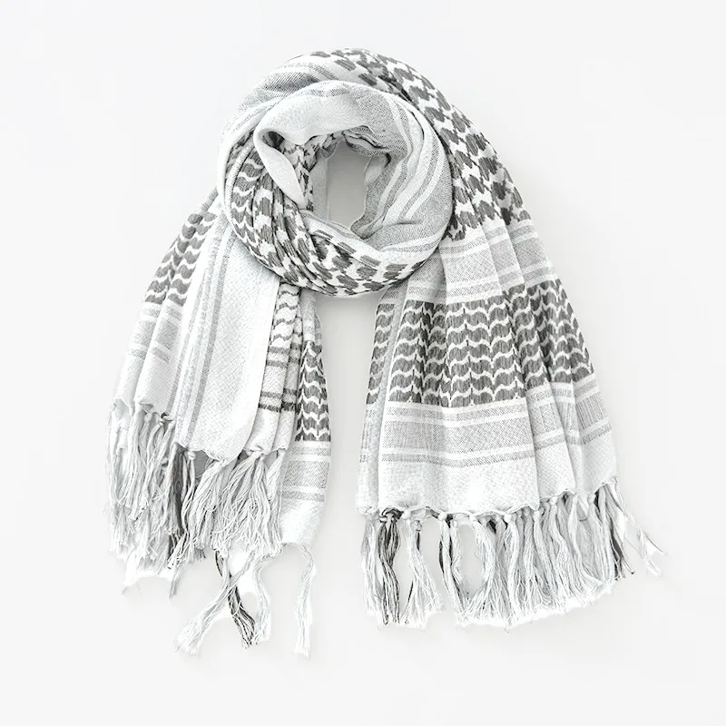 Fashion Military Woven Shemagh Tactical Desert Scarf Tassels 100% Cotton Square Men Headscarf Neck Wrap Soft White Scarves
