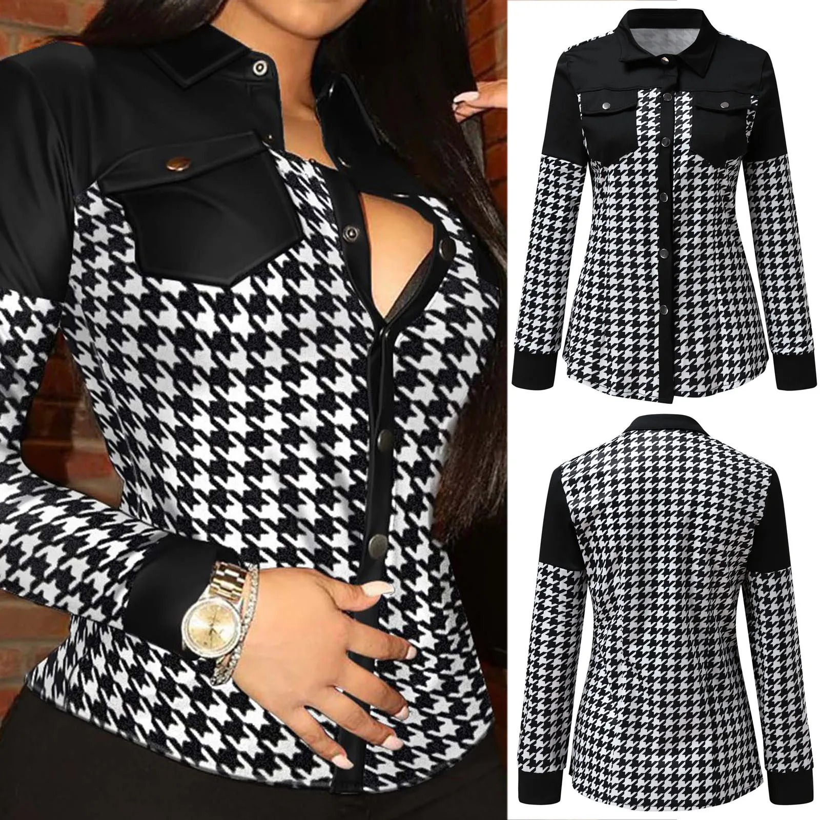 Fashion Women Shirts Spring Lapel Long-sleeved Button Cardigan Tops Vintage Plaid Print Elegant Casual Sexy Slim Ladies Blouse