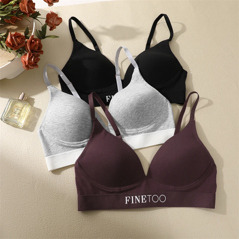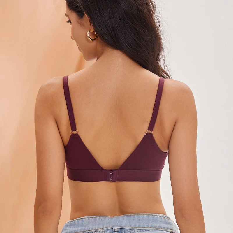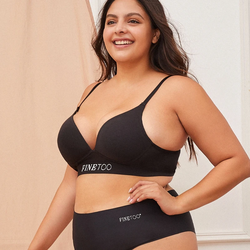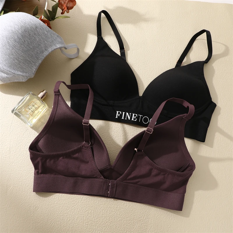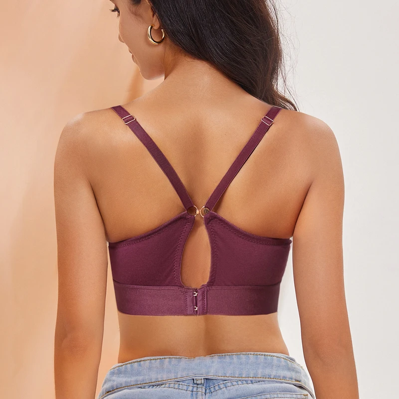 FINETOO Women Cotton Seamless Bras Sexy Deep V Breathable Lingerie Ladies Push Up Padded Tops Plus Size Backless Bralette Bras