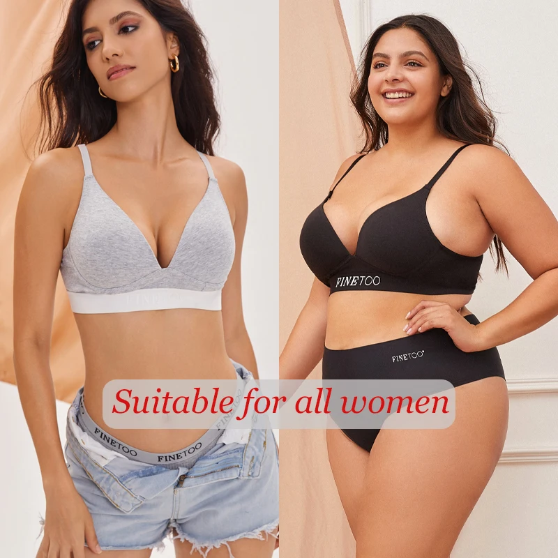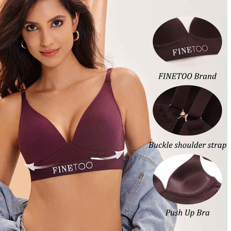 FINETOO Women Cotton Seamless Bras Sexy Deep V Breathable Lingerie Ladies Push Up Padded Tops Plus Size Backless Bralette Bras