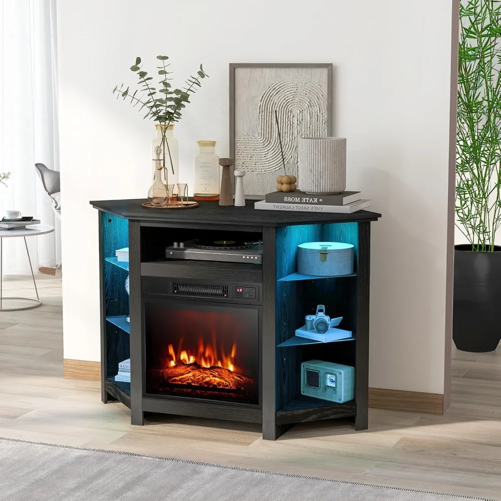 Fireplace Corner TV Stand for TVs Up to 50-inch, Modern Electric Entertainment Center with 16-Color LED Lights, 4 Modes, Remote