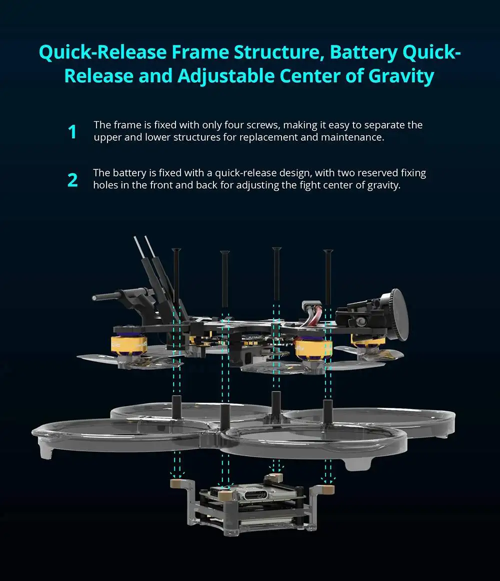 (The Analog Version features the new GOKU 1-2S 5IN1 12A AIO. It not only integrates the ELRS 2.4G but also inherits a 400mW VTX. This version pushes the limits of weight control without sacrificing performance.)
