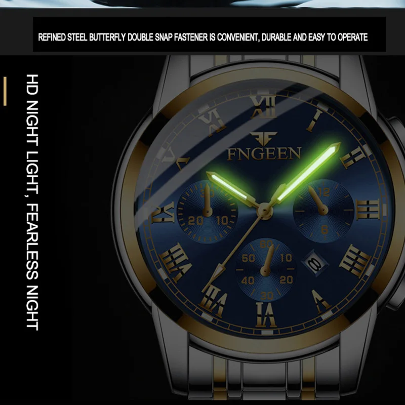 FNGEEN Hot Men Watches Top Brand Luxury Waterproof Date Clock Male Steel Strap Fashion Quartz Watch Sports Wrist Watch Men 4006