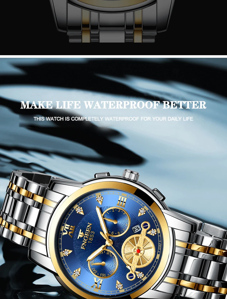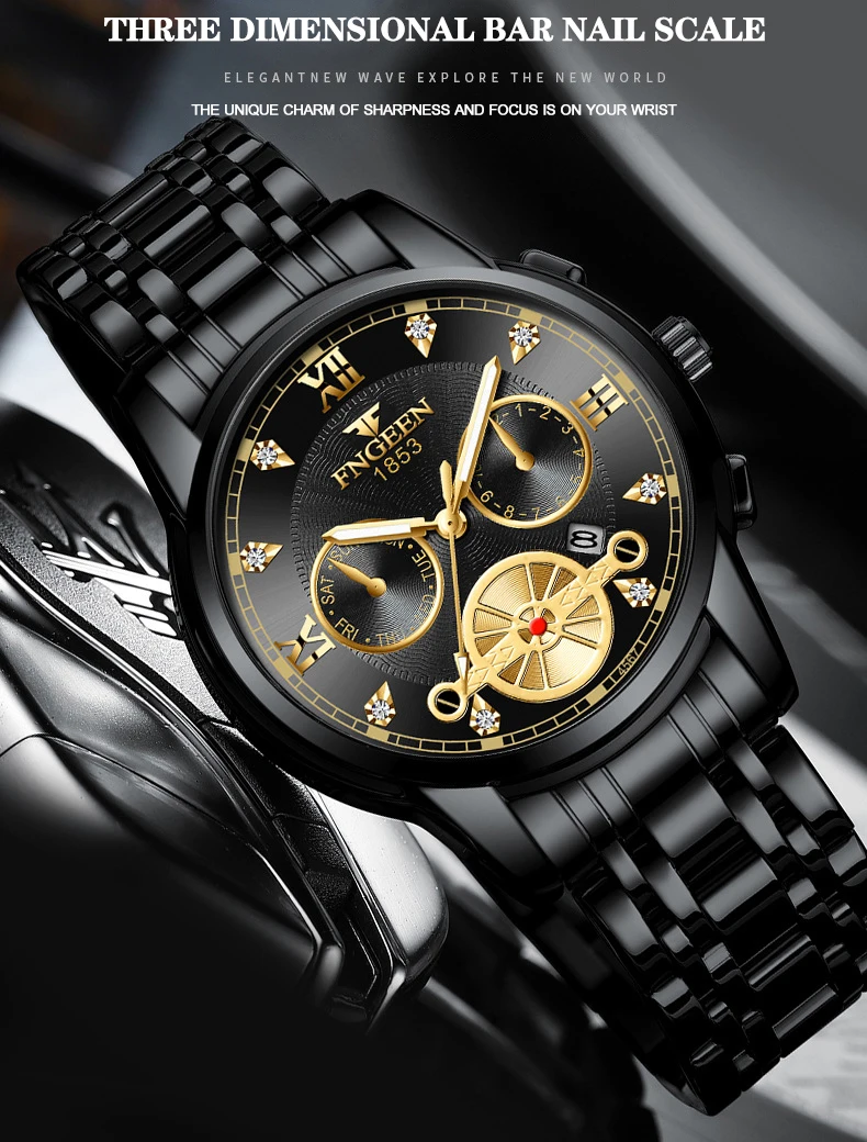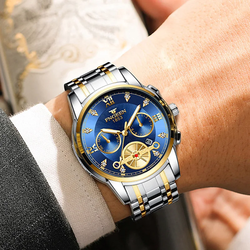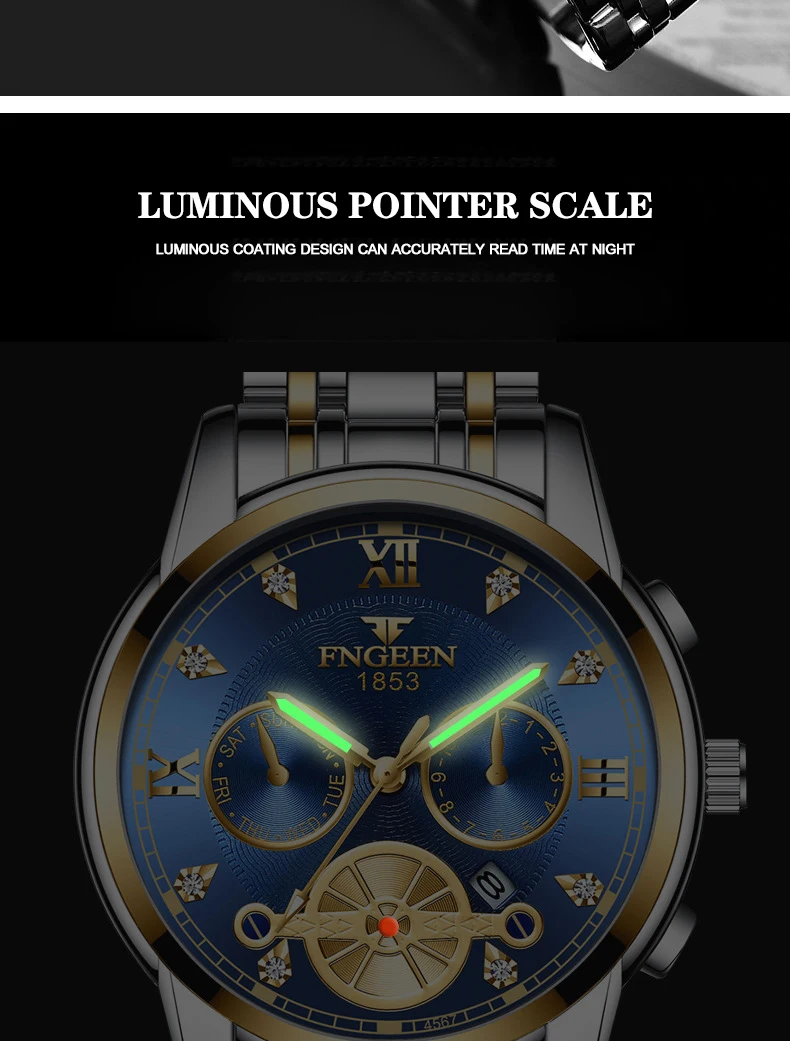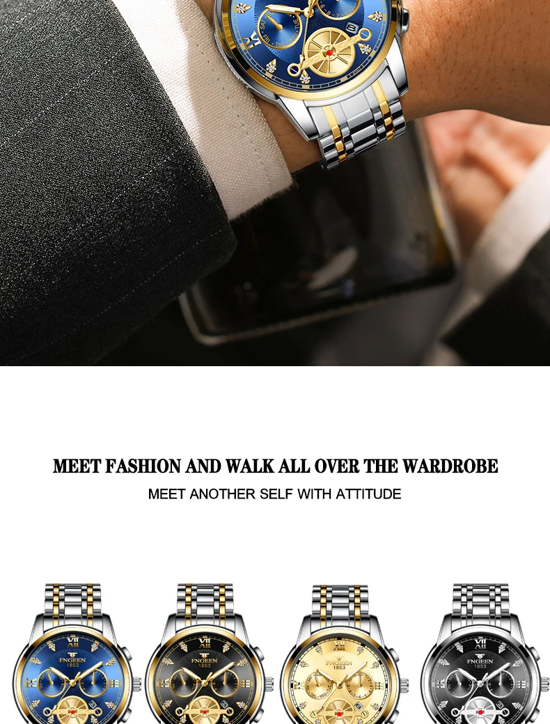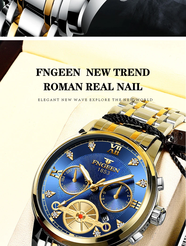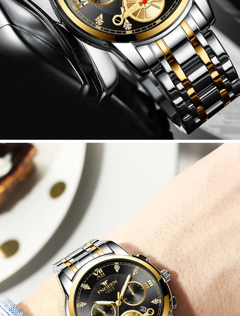 FNGEEN Men’s Watches Top Luxury Brand Fashion Quartz Men Watch Waterproof Gold Steel Business Wristwatch Reloj Hombre 4567