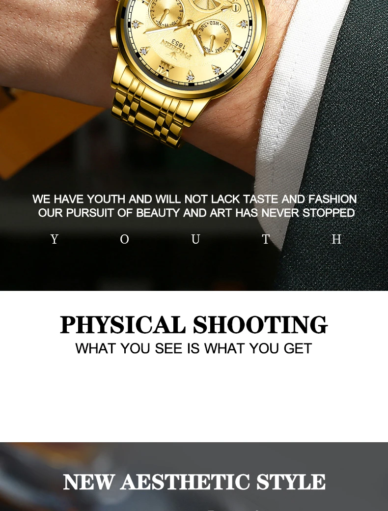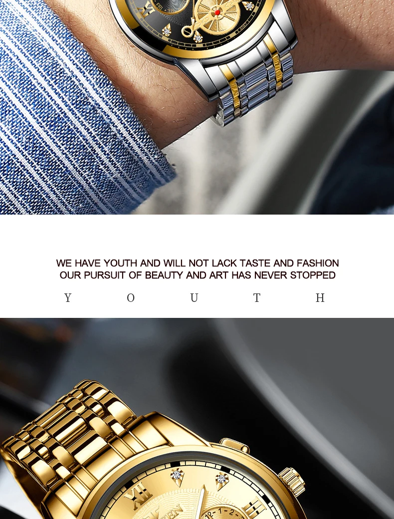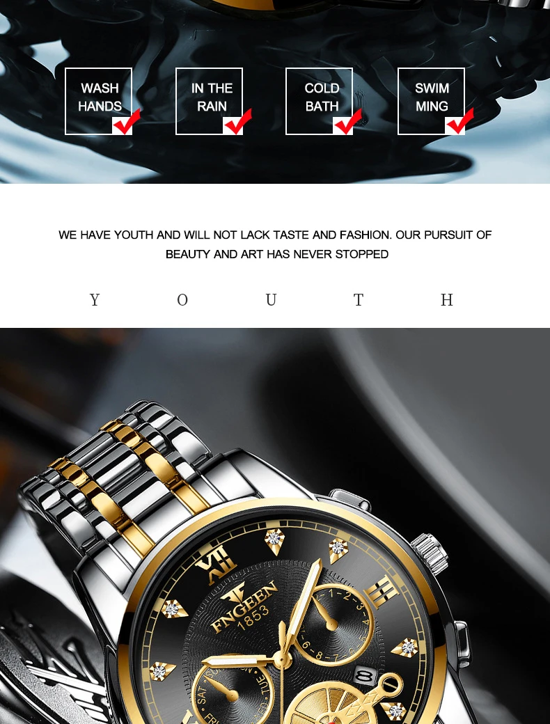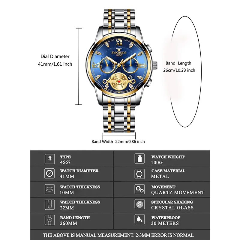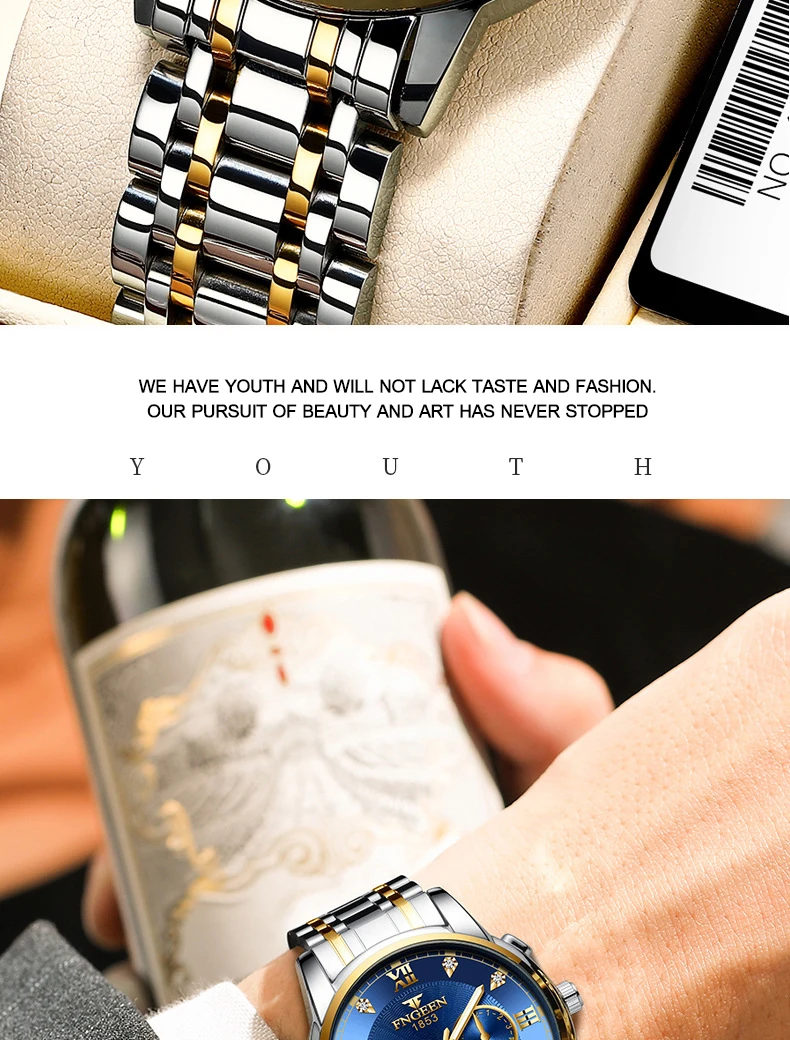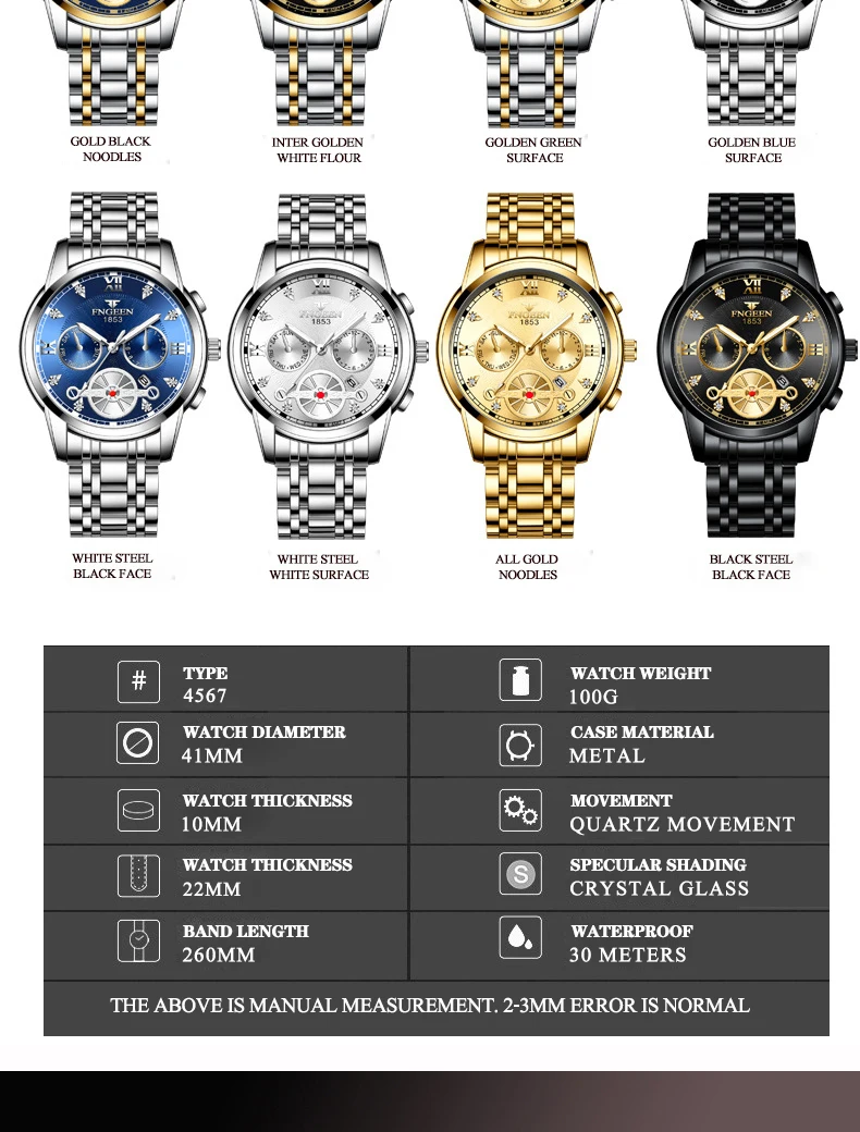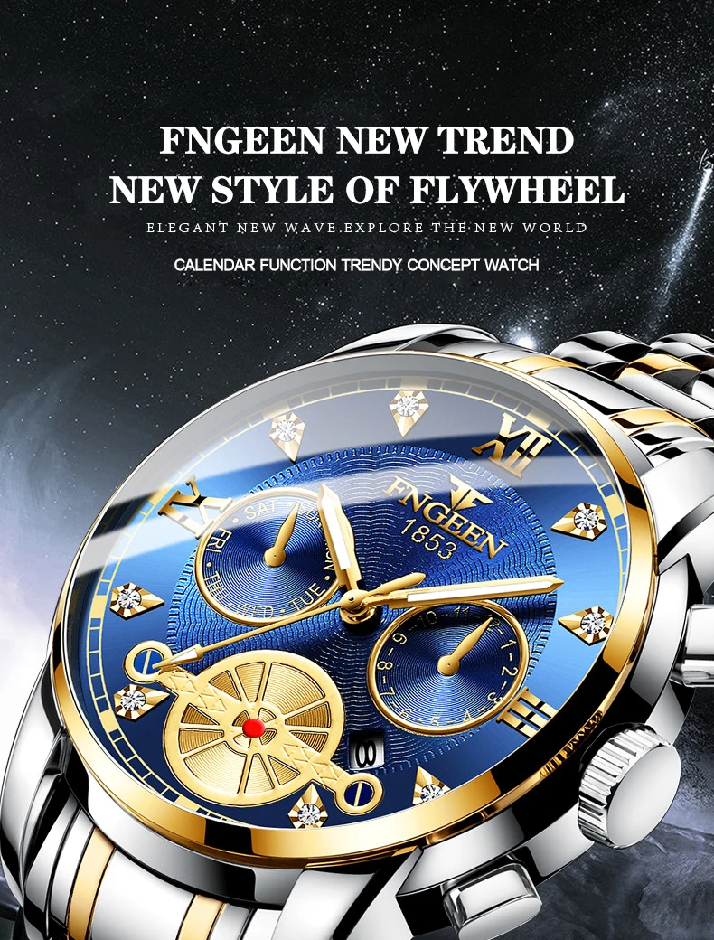 FNGEEN Men’s Watches Top Luxury Brand Fashion Quartz Men Watch Waterproof Gold Steel Business Wristwatch Reloj Hombre 4567