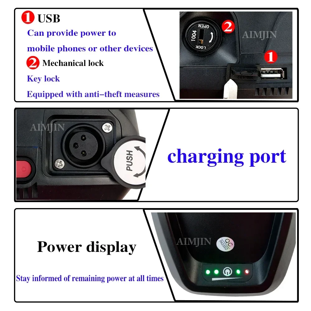 Protection functions: overcharge, overdischarge, overcurrent, short circuit, balance battery 36V electric bicycle battery for-Hailong Downtube 36V 30Ah BMS 18650 battery rechargeable lithium battery USB electric bicycle
