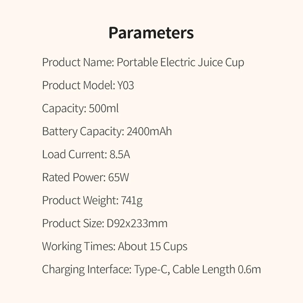 5.2400mAh Battery,Durable, can make 15cups of juice.
