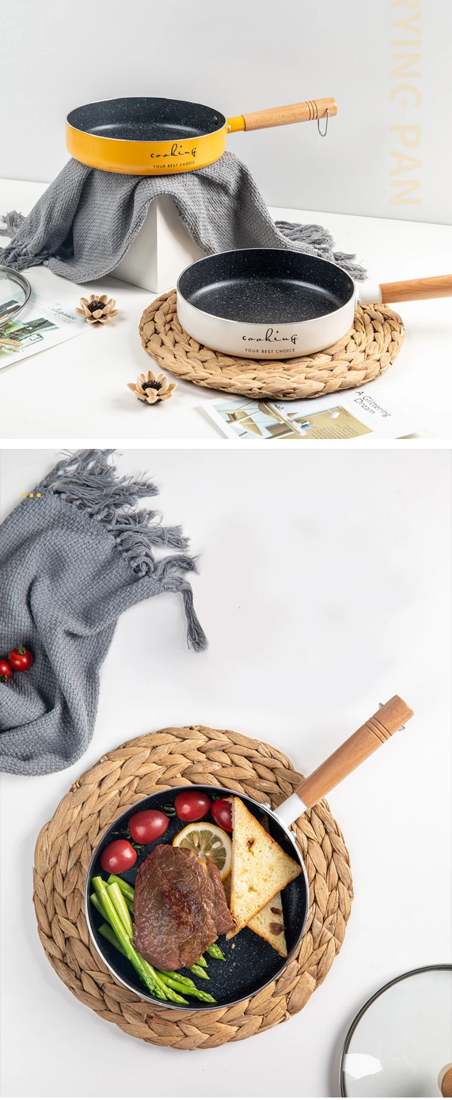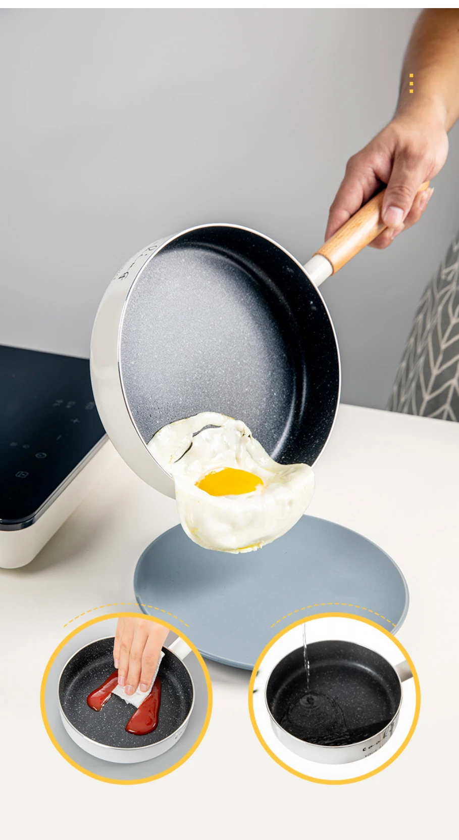 Frying Pan 16/20cm Wok Pan Non-stick Pan Induction Cooker Home Steak Pancake Pan Egg Pan Gas Stove Universal Saucepan Durable