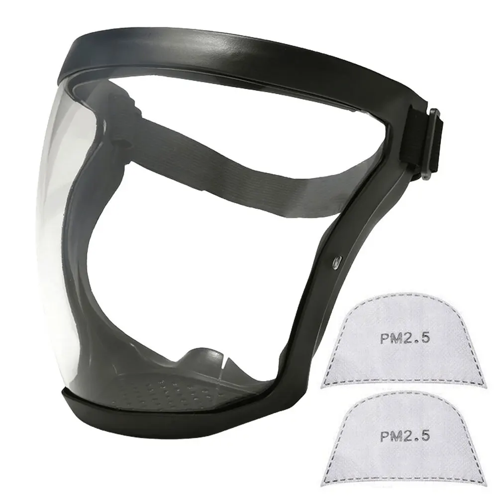 ![]() Full Face Shield Safety Face Protection Equipment Transparent High-Definition with 2 Filter for Laboratory Work Mowing Gardening Features: