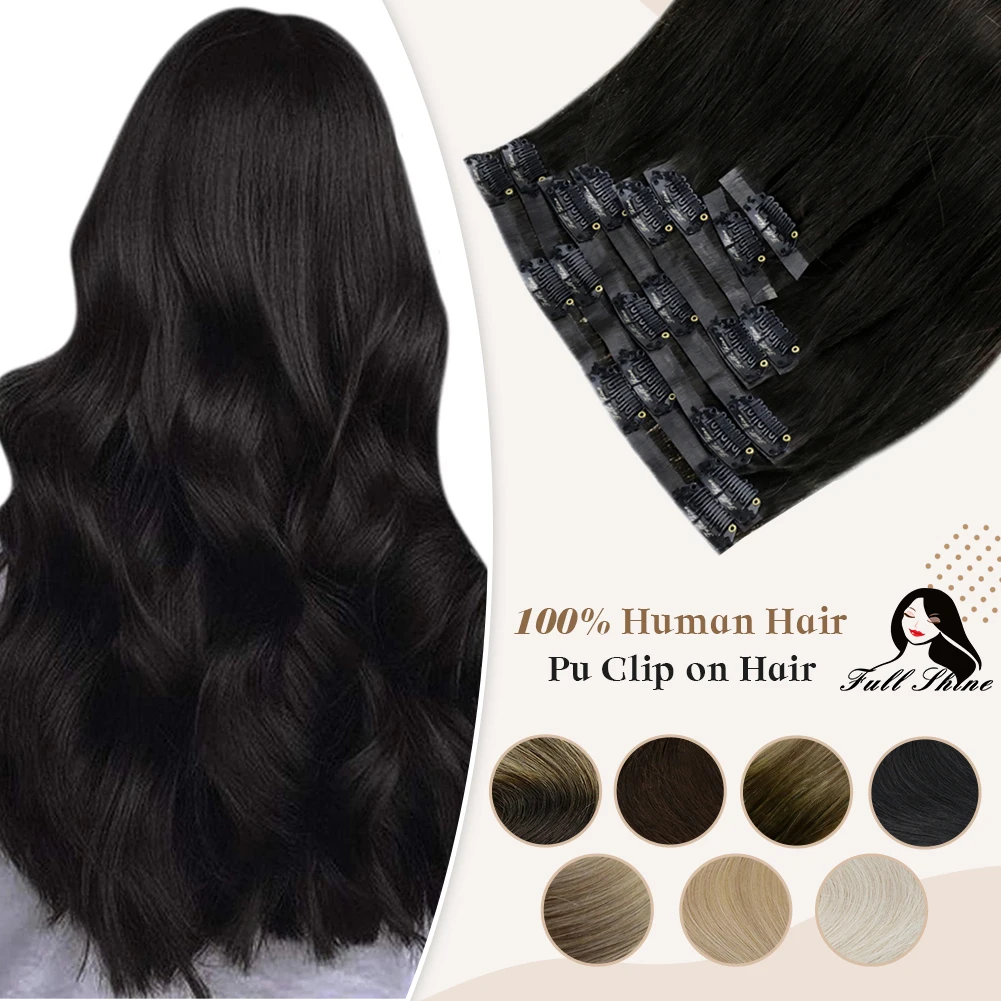 Full Shine Seamless Clip in Human Hair Extensions 8Pcs 100g&80g Pure Color Blond Hair Pu Clip on Remy Extension Skin Weft