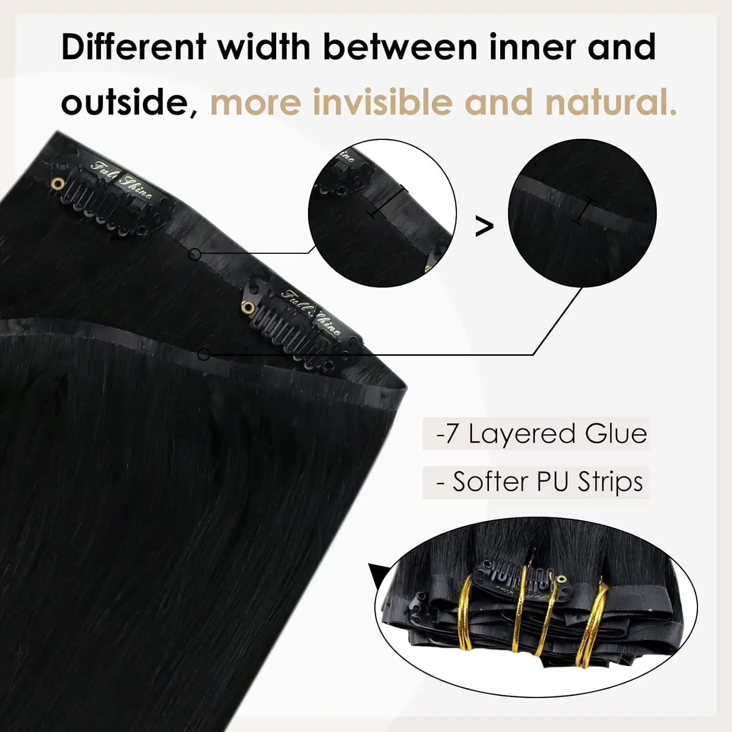 Double Weft Clips ins: Seamless PU Weft Clip ins: