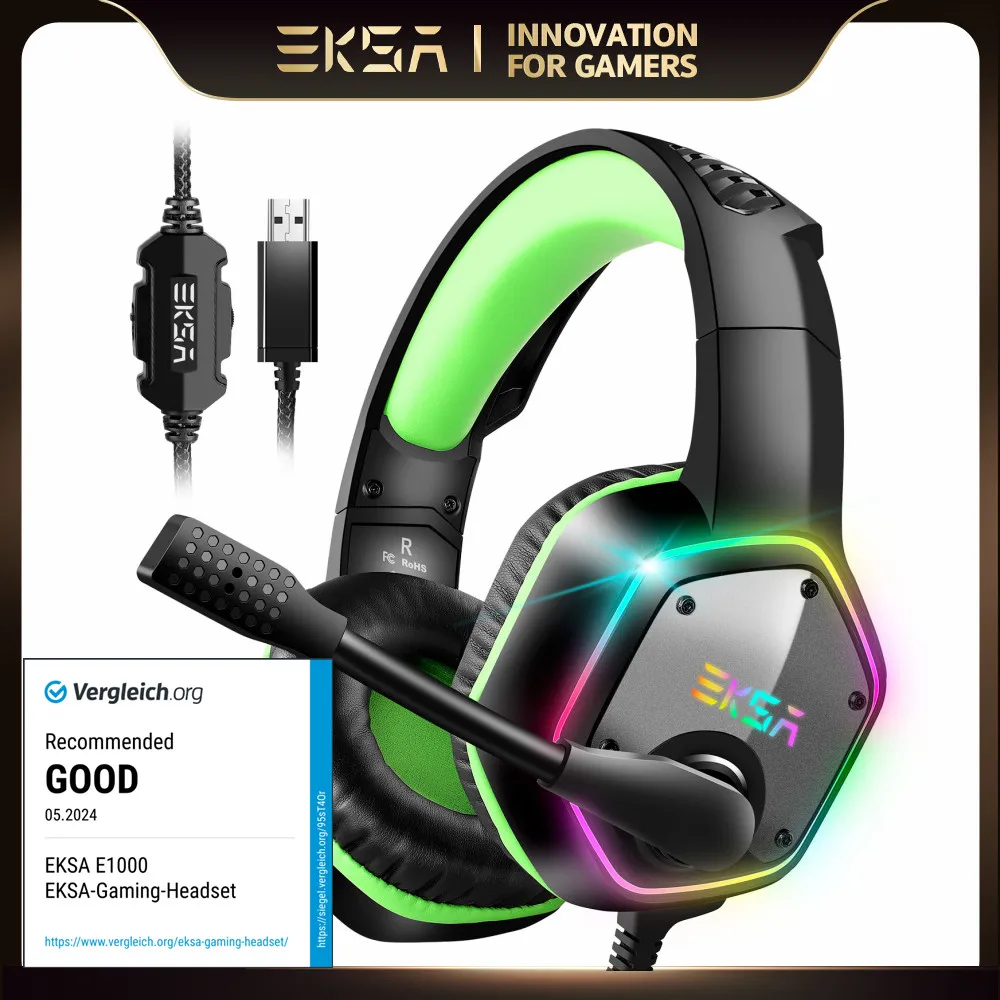 Gaming Headphones For PC/PS4/PS5 EKSA E1000 7.1 Surround RGB Gaming Headset Gamer USB Wired Headphones with Noise Cancelling Mic