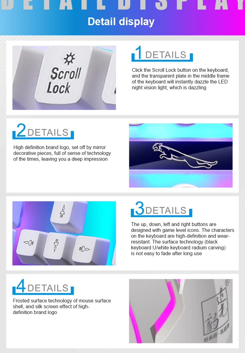 | Feature 1 | Wired Keyboard Mouse Color Keycap |