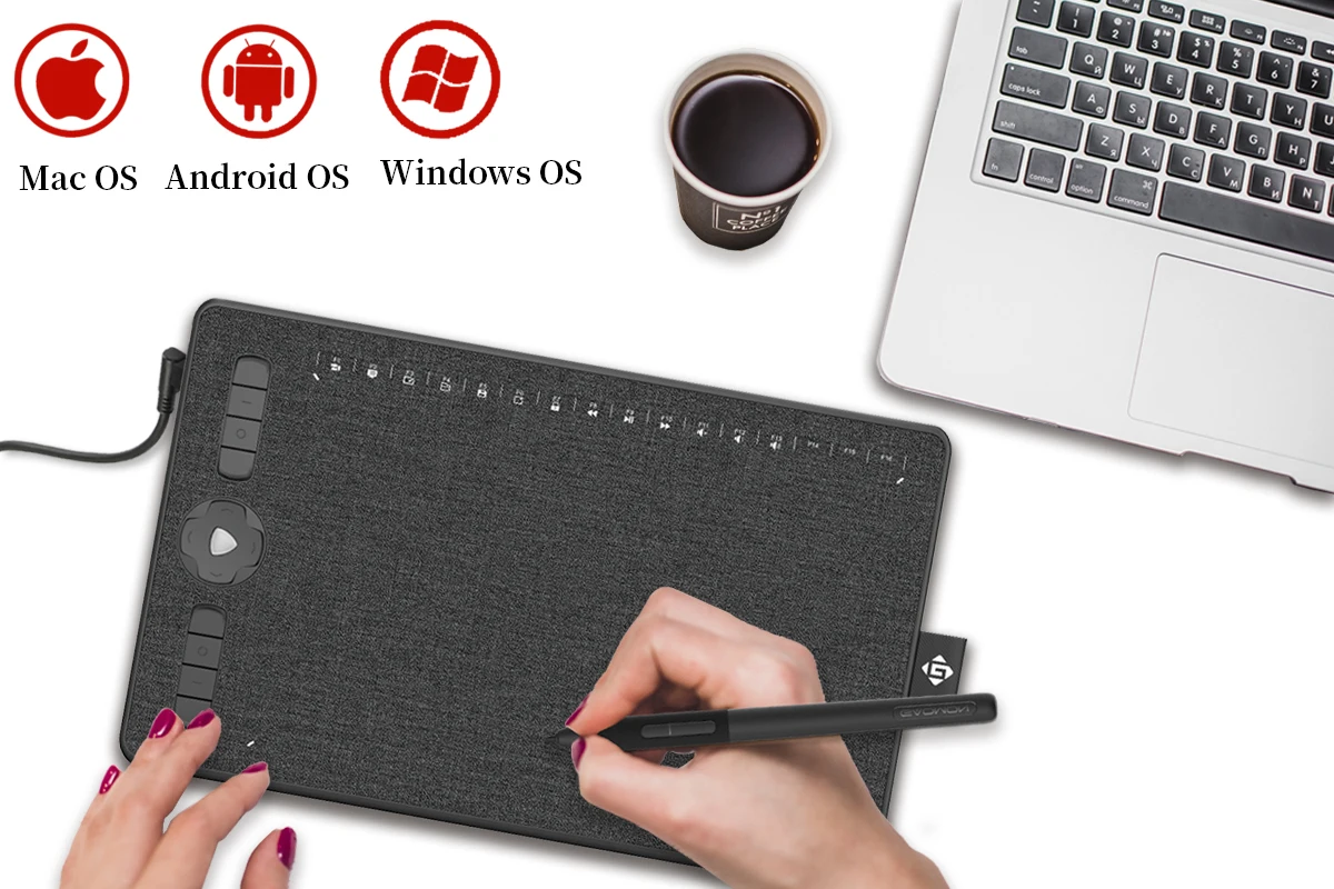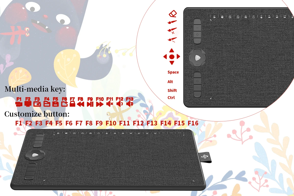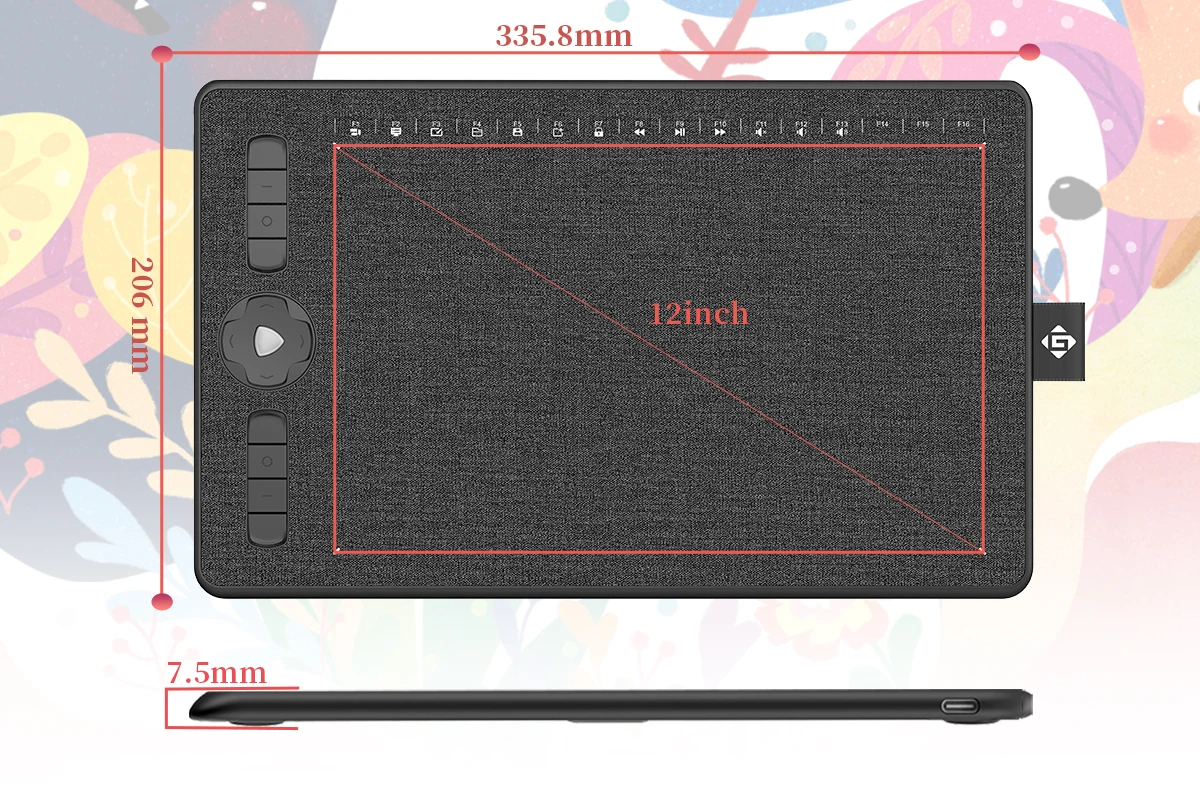 GAOMON M1230 12 Inch Tablet has 8192 Levels of Pressure Sensitivity and can be connected to Android Phones with 8 Shortcut Keys